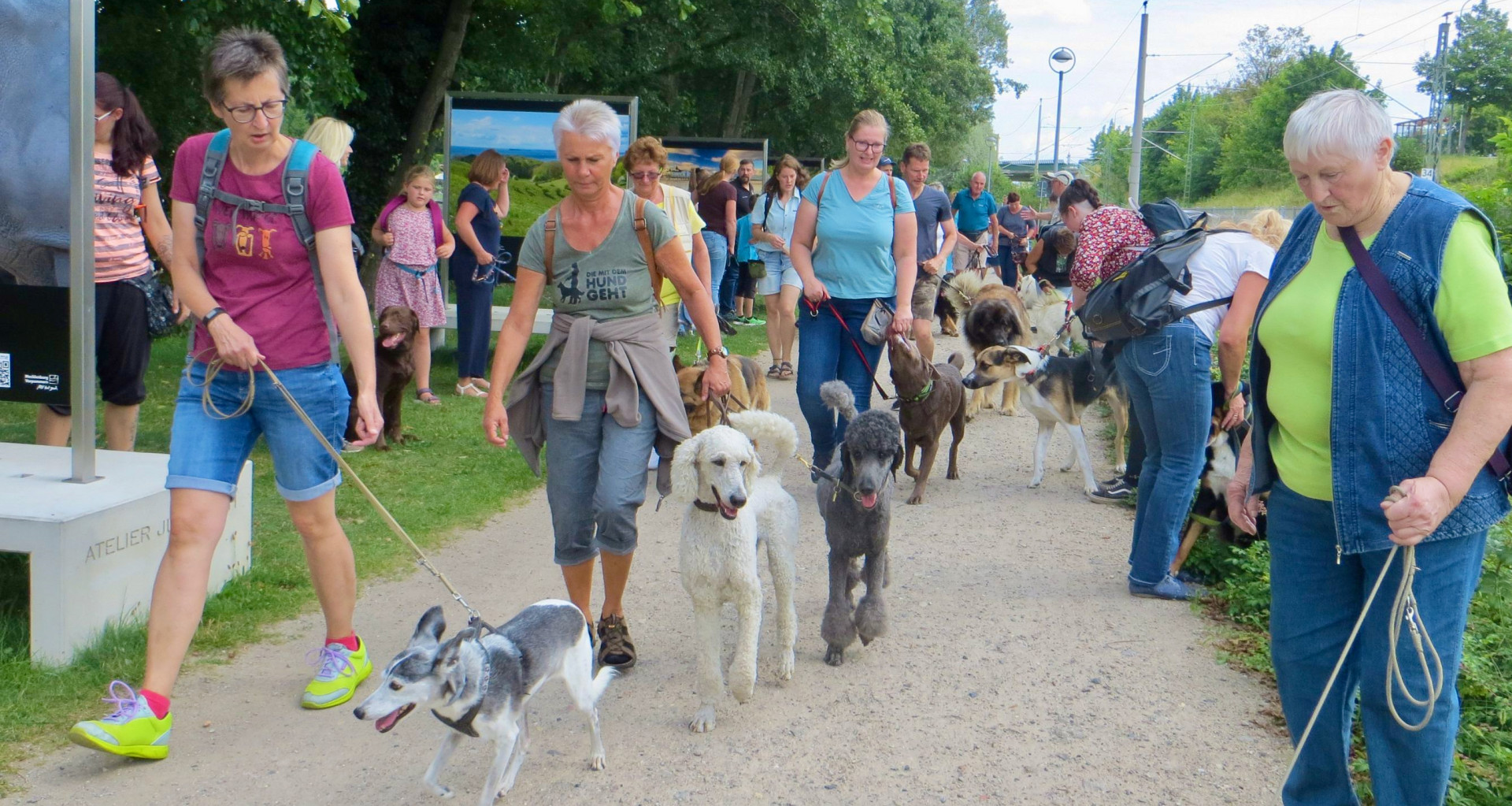 Die Verantwortlichen des Allgemeinen Hundevereins Kiebitzberg e.V. waren überrascht: Der Einladung zur diesjährigen Stadtwanderung waren am Wochenende etwa 45 Teilnehmer mit 30 Hunden gefolgt. Mit dieser großen Resonanz hatte niemand gerechnet. Vom kleinen Yorkshire Terrier bis zum großen Leonberger waren viele Rassen und Mixe vertreten. Einige Hunde kannten sich vom gemeinsamen Training auf dem Hundeplatz, aber es waren auch viele Neulinge dabei.