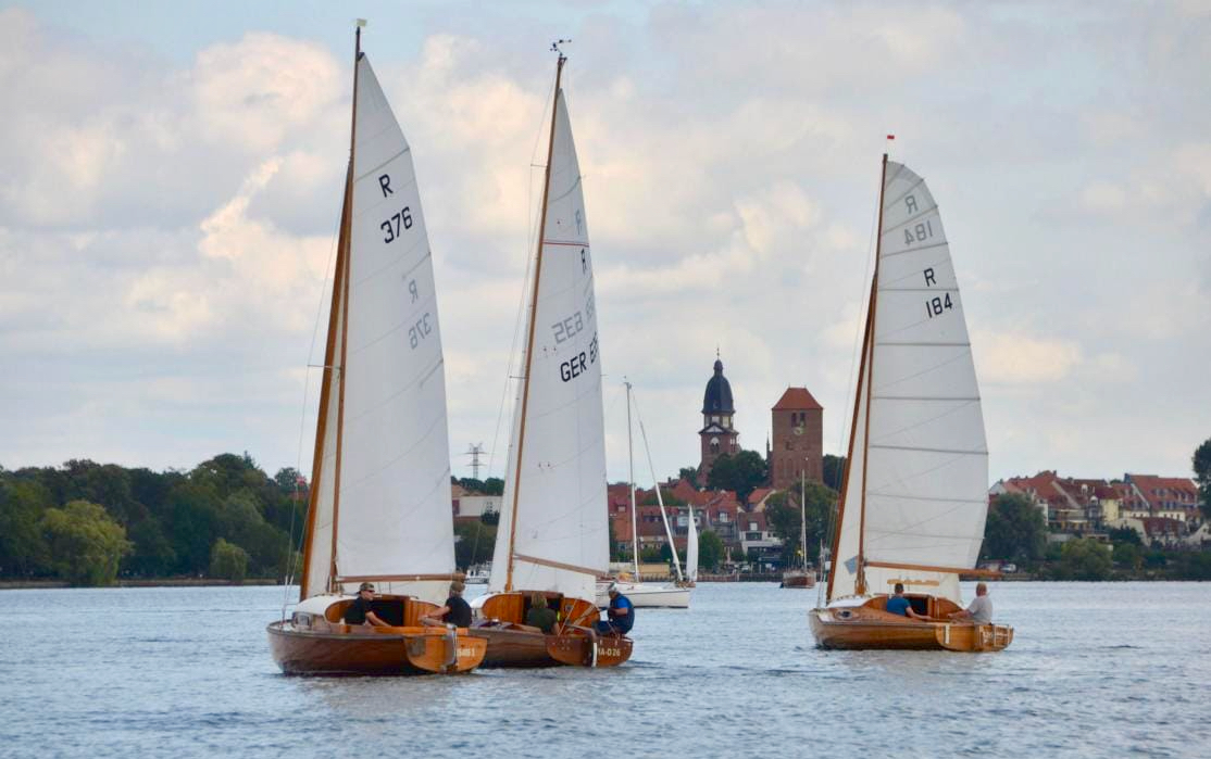 Beste Bedingungen heute für die Teilnehmer der ersten Holzbootregatta „Müritz Klassik“, veranstaltet vom Warener Seglerverein: Der Wind blies mit 3-4 Beaufort aus östlicher Richtung und bescherte allen einen herrlichen Segeltag.