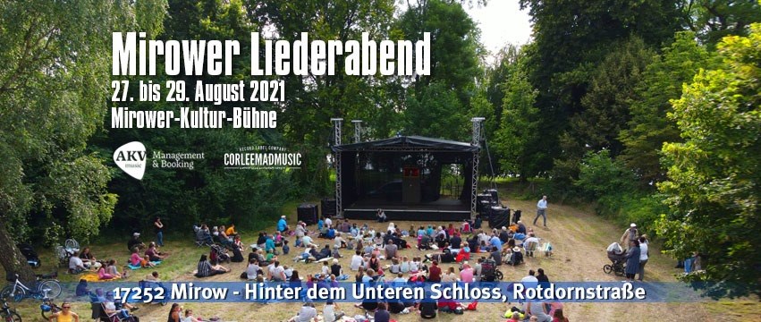 Im vergangenen Jahr fand mit Unterstützung der Stadt Mirow der erste „Mirower Liederabend“ auf dem Festgelände an der Rotdornstraße statt. Nach nur vier Wochen Vorbereitungszeit konnten die Bewohner der Region und ihre Besucher eine hochkarätig besetzte Veranstaltung erleben. Angesichts der zahlreichen pandemiebedingten Ausfälle und Organisationsprobleme in der vergangenen Festivalsaison war der „Mirower Liederabend“ ein Lichtblick mit perfekt organisiertem Schutz für Teilnehmer und Besucher. Am kommenden Wochenende – 27. bis 29. August – gibt’s die zweite Auflage.