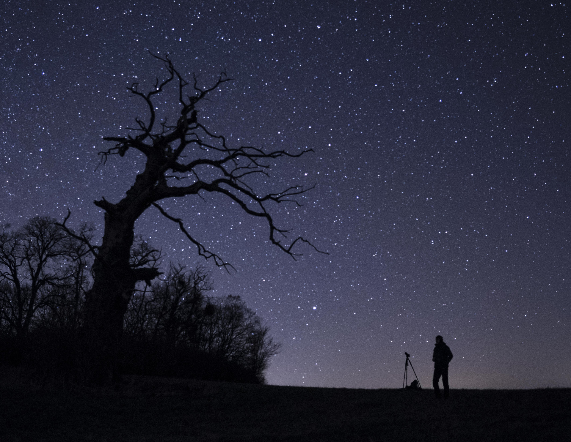 Sobald es dunkel genug ist, geht es draußen weiter. Eine eigene Kamera und ein Stativ sind notwendig. Außerdem sind warme Kleidung und eine Stirnlampe (möglichst mit Rotlicht) oder eine Taschenlampe hilfreich.