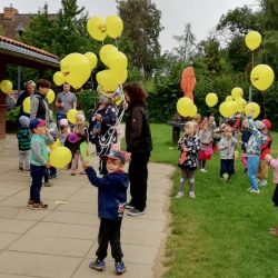 Am Freitag dann wartete noch eine besonderer Tag auf sie. Ehemalige Kindergartenkinder überraschten die 63-Jährige mit einem tollen Frühstücksbüfett für alle. Am Ende ließen alle Kinder symbolisch einen Luftballon steigen.
