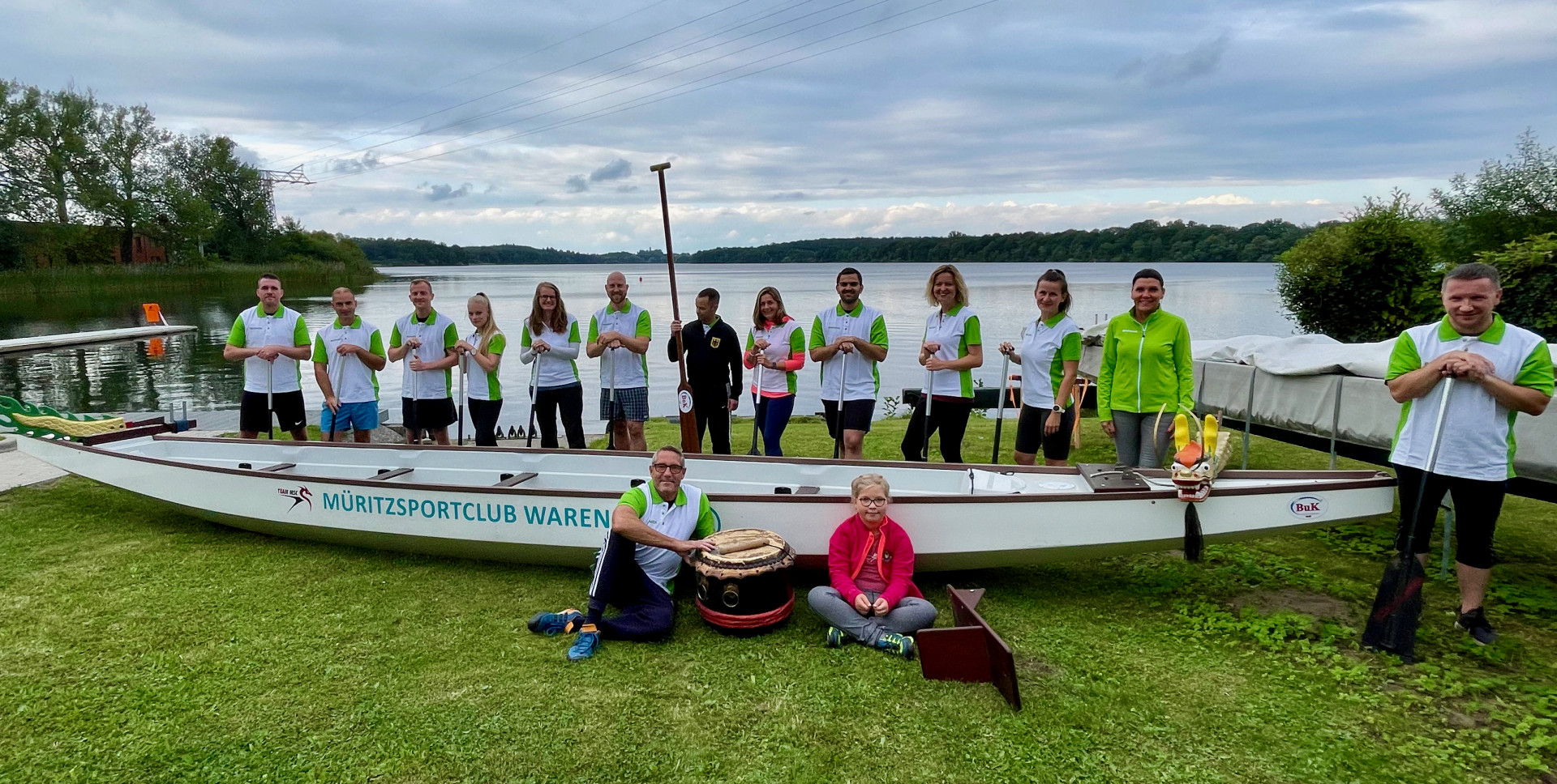 Und zu einer ordentlichen Mannschaft gehört auch eine vernünftige Ausstattung. Darum muss sich das Team „Stadtdrachen“ jetzt keine Sorgen mehr machen. Kerstin Müsebeck von der BARMER in Waren hat die Freizeitsportler – darunter auch Warens Feuerwehrchef Reimond Kamrath – unlängst mit Trikots ausgestattet.