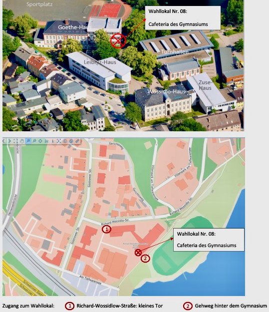 In Waren gibt es zur bevorstehenden Landtags- und Bundestagswahl eine Änderung bei den Wahllokalen. Das Wahllokal mit der Nummer 08, das bislang immer in der Arche-Schule in der Güstrower Straße untergebracht war, zieht um. Die Wähler müssen jetzt ein paar Meter weiter, nämlich in die Cafeteria des Richard-Wossidlo-Gymnasiums (siehe Plan).