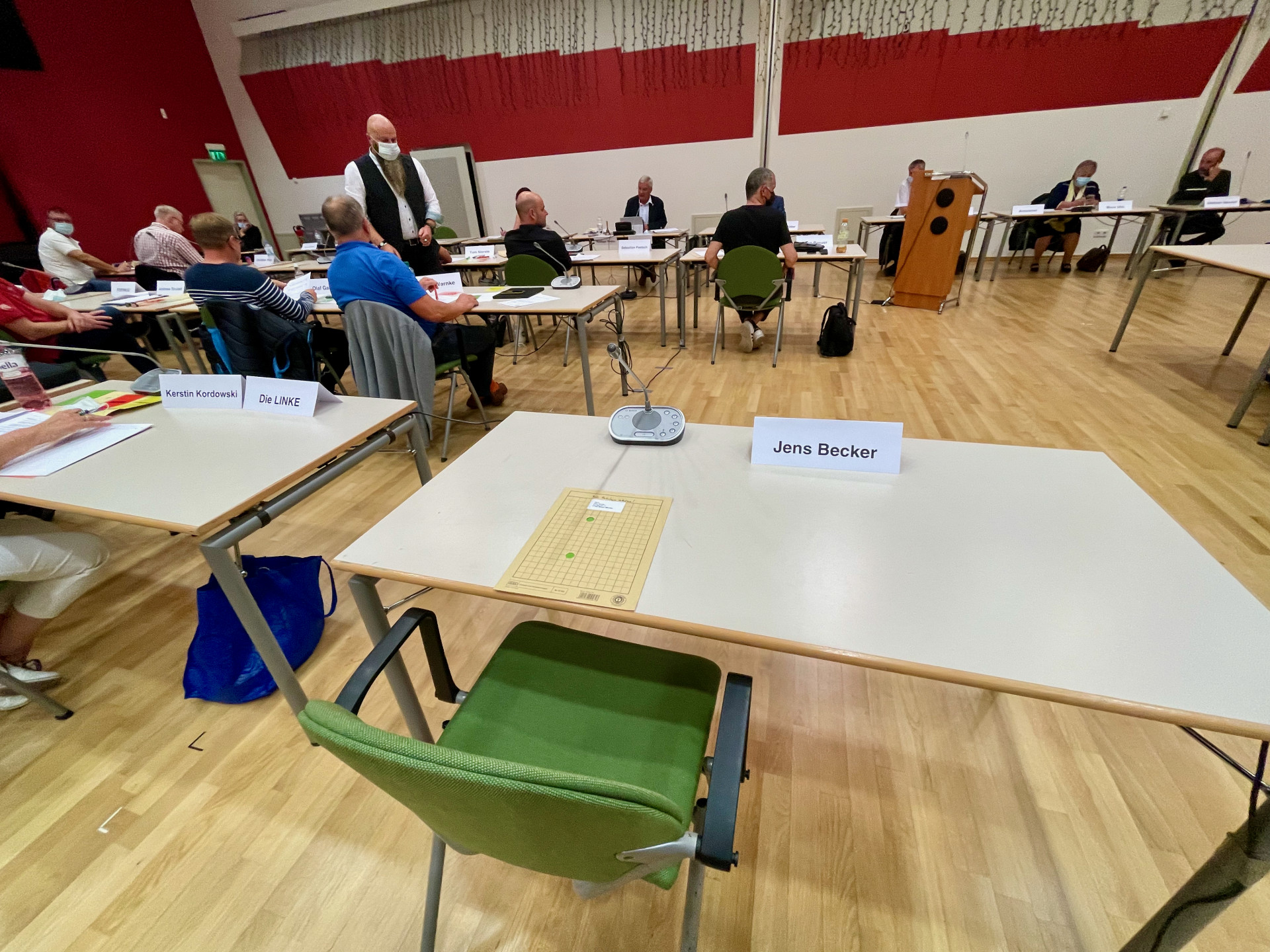 Hat da etwa jemand gekniffen? Der jetzt partei- und fraktionslose Stadtvertreter Jens Becker ist der Stadtvertretersitzung in dieser Woche fern geblieben. Es wäre die erste Sitzung für ihn als Einzel-Stadtvertreter nach seinem Rückzug aus der FDP/MUG-Fraktion gewesen. Und die Mitarbeiter der Verwaltung hatten für ihn auch „eingedeckt“, sprich, ein Einzeltisch stand für ihn bereit. Doch der blieb leer.