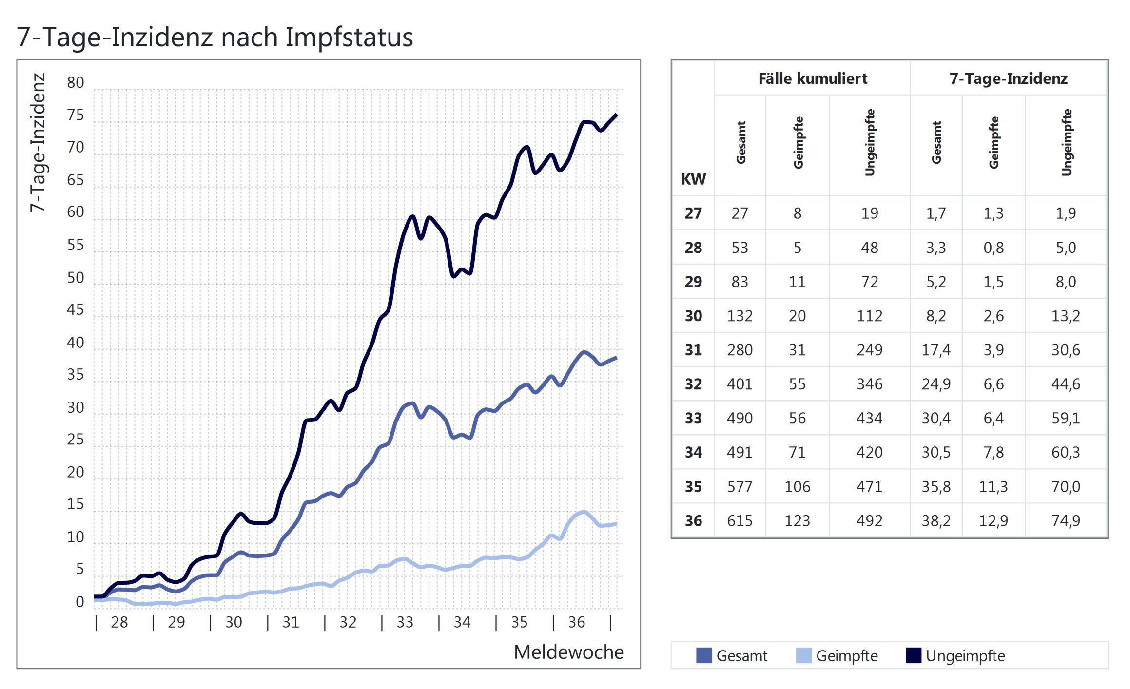 Unter diesem Artikel finden Sie, liebe Leser, nicht nur die bekannte Grafik des Landesamtes für Gesundheit zu den Corona-Fällen, sondern auch eine Grafiken zu den Inzidenzen – unterteilt in Geimpfte und Ungeimpfte.