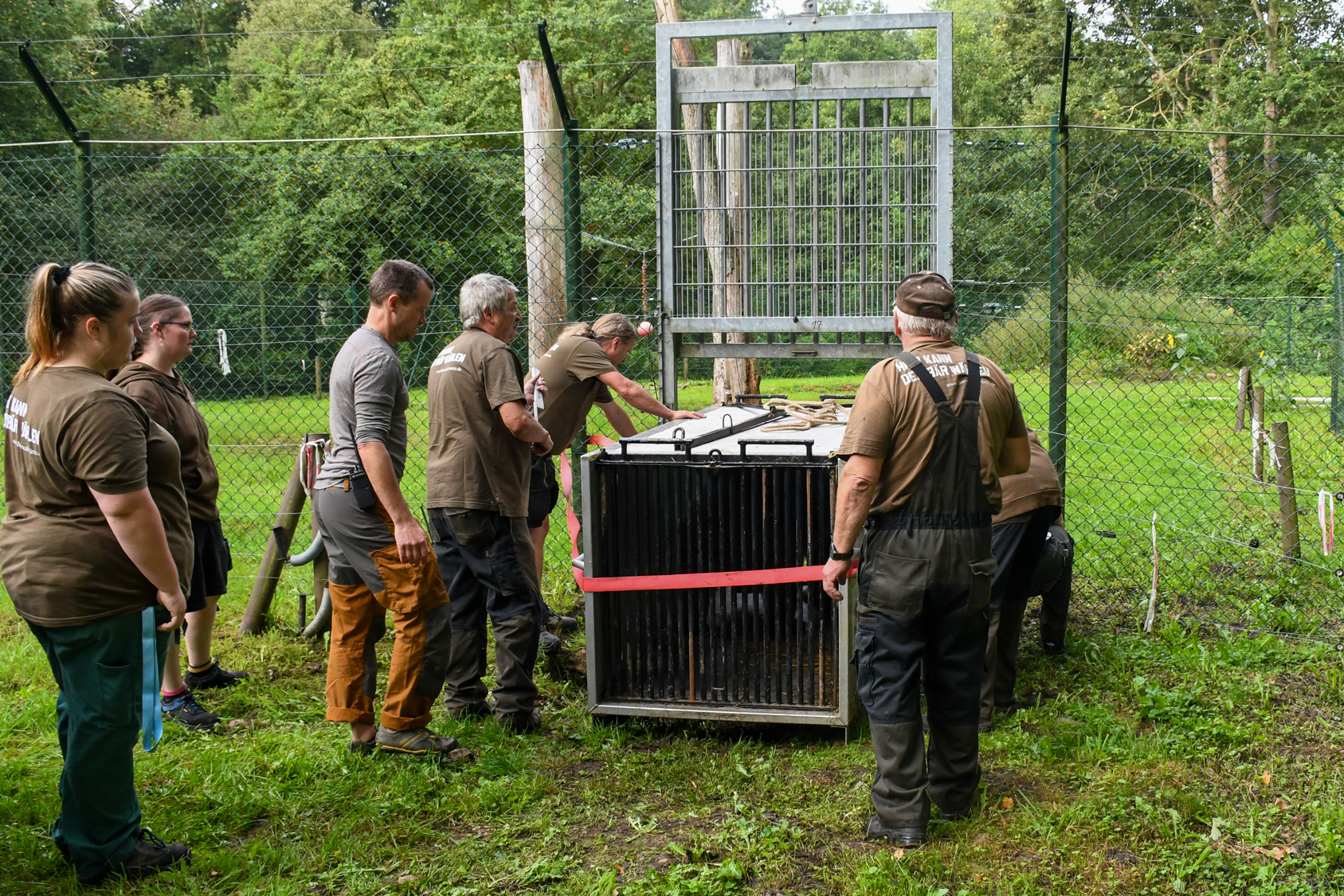 „Wir sind froh und stolz, dass wir Dushi ohne Betäubung in ihr neues Gehege bringen konnten. Eine Narkose birgt für ein so großes Tier immer gesundheitliche Risiken. Mit viel Geduld und reichlich Leckerchen konnten wir Dushi aber langsam daran gewöhnen, die Transportbox zu betreten. Das hat etwas gedauert und klappte nicht von jetzt auf gleich, aber sie hat uns vertraut und irgendwann konnten wir die Box verschließen, während Dushi entspannt im Inneren saß“, freut sich Pressesprecherin Petra Konermann.