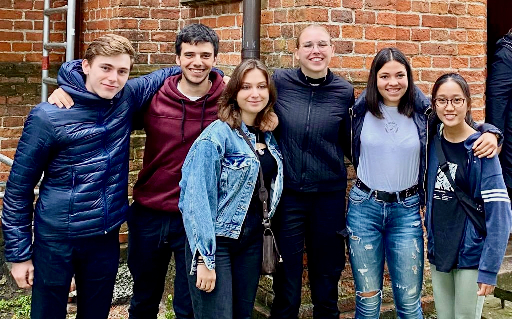 Foto oben: Willkommenstreffen der neuen sechs Müritzer Gastschüler: von links – Guillaume aus der Schweiz, Diego aus Argentinien, Defne aus der Türkei, Emilia aus Finnland, Valentine aus Belgien und Hana aus Japan.