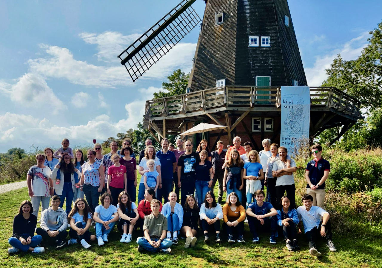 Foto unten: Sommerfest an der Röbeler Windmühle mit Austauschschülern und Gastfamilien der YFU-Landesgruppe Mecklenburg-Vorpommern/Brandenburg.
