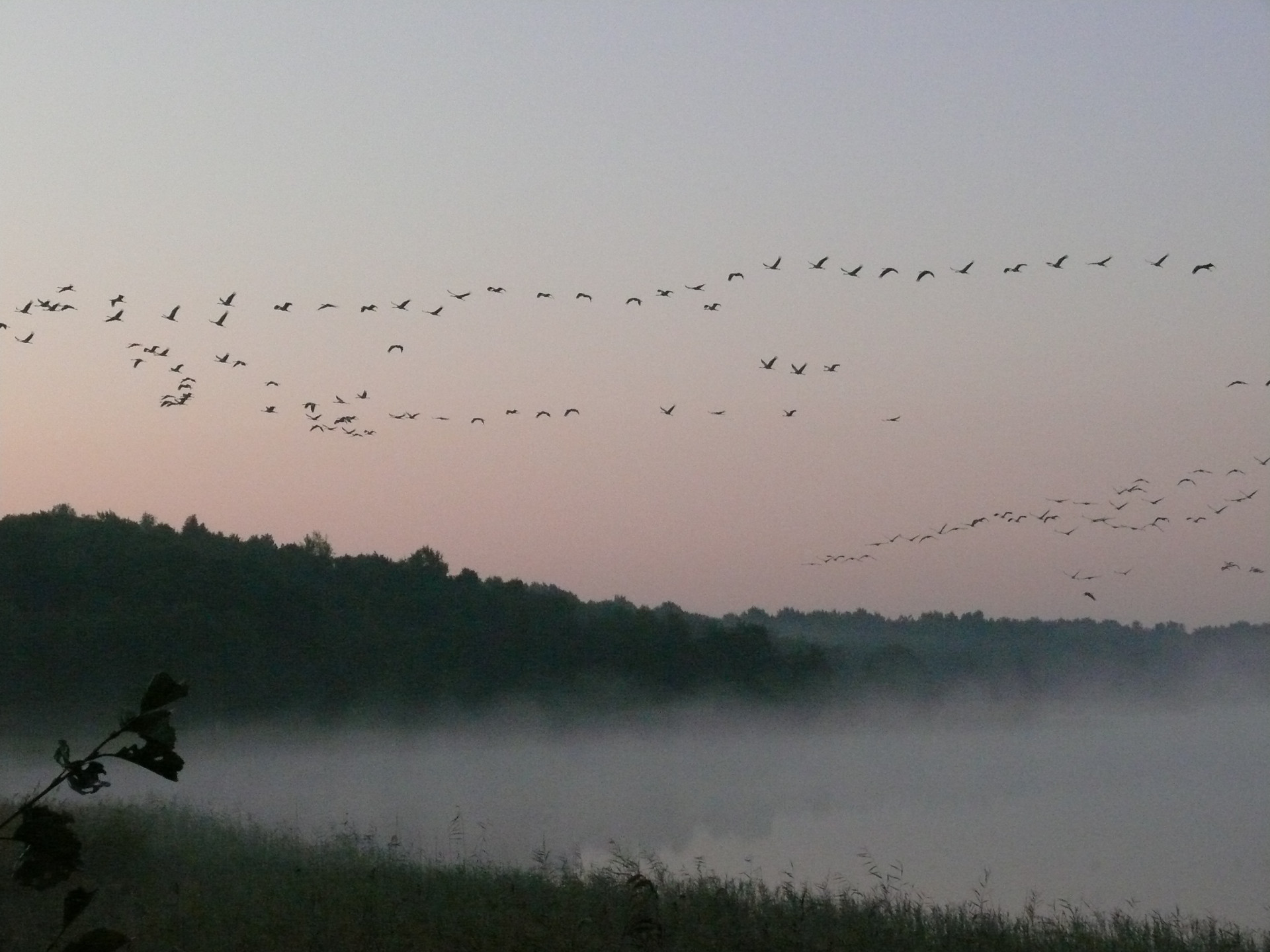 Der Morgennebel liegt schwer auf den Wiesen am Rederangsee. Mit dem ersten Licht des Tages erheben sich hunderte Kraniche von ihren Schlafplätzen im flachen Wasser des Sees und steigen mit ihrem trompetenden Ruf in den Himmel, der Sonne entgegen.