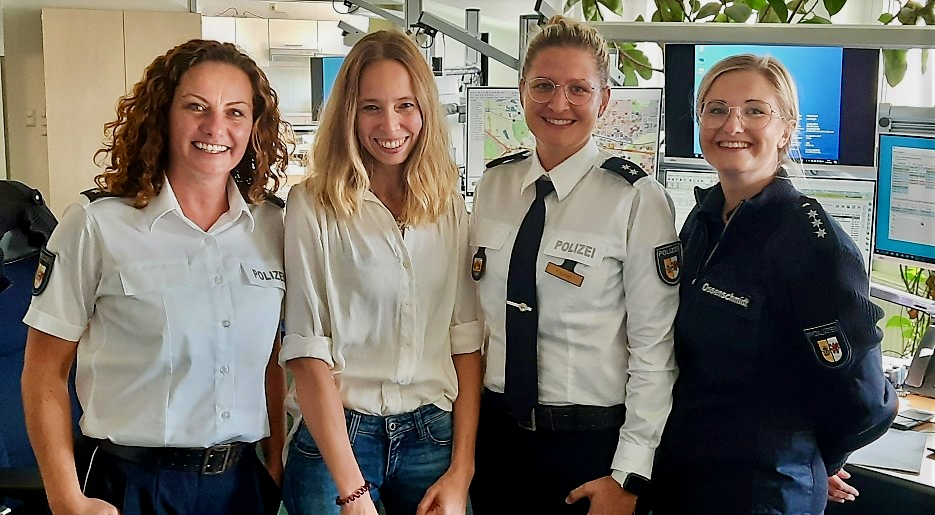 Bild unten: Die „Zwitscher-Damen“ des Polizeipräsidiums Neubrandenburg haben gestern viele Stunden lang via Twitter einen Einblick in die Arbeit der Leitstelle und Polizei gegeben: Nicole, Claudia, Jennifer und Susann.