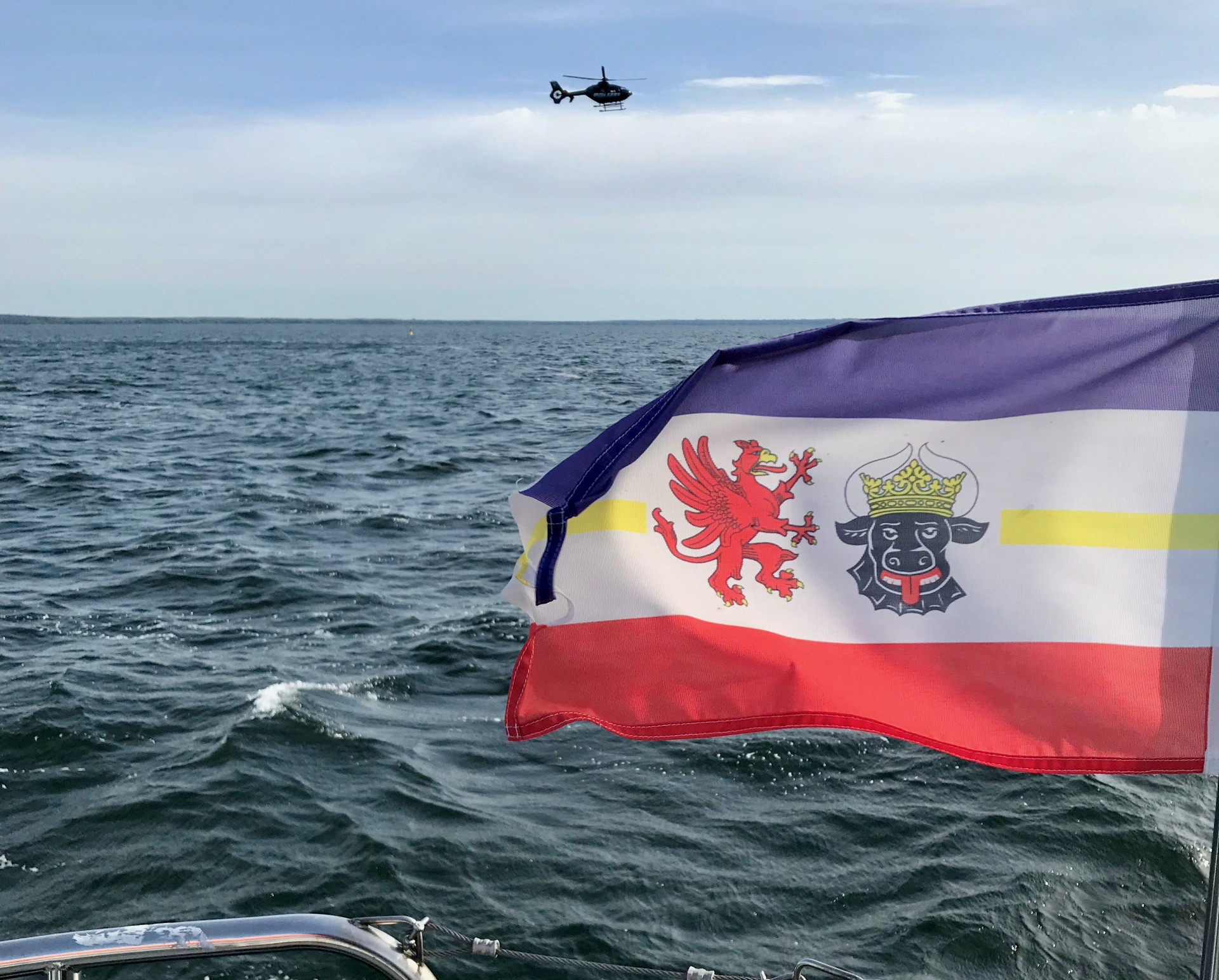 „Auch heute suchen wir nach dem vermissten Segler auf der Müritz. Im Einsatz: Das Binnenstreifenboot und der Polizeihubschrauber Merlin 1 der Wasserschutzpolizei“- „Rüber nach Barth: Eine Seniorin sucht ihre Schlüssel – jedoch muss sie dabei weiter ohne uns auskommen. Wir sind kein Schlüsseldienst“