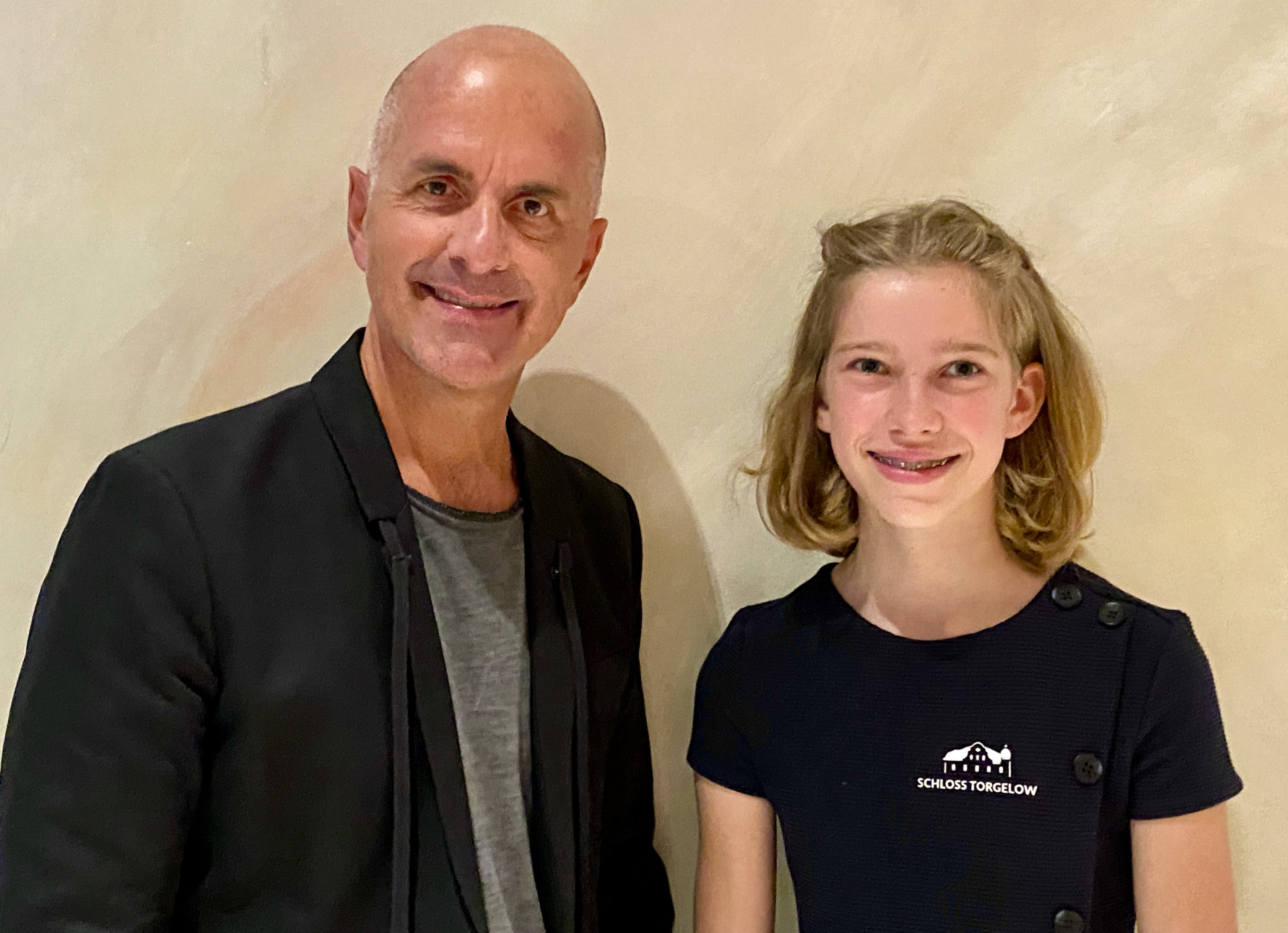 Eva hat sich gemeinsam mit ihrem Gedächtnistrainer Steffen Bütow intensiv auf ihr Duell vorbereitet. Auch in den Sommerferien gab es einen Stundenplan und viele Übungseinheiten. Steffen Bütow, selbst ehemaliger Spitzensportler im Gedächtnissport, ist sehr stolz auf Eva. „Eva hat mich eigentlich in fast jeder Trainingseinheit überrascht. Sie war so schnell, dass ich ihre Antworten zum Teil aufnehmen musste, um sie auf ihre Korrektheit zu überprüfen“, schildert der erfahrene Trainer die Zusammenarbeit. Auch die Generalprobe vor der großen Schul- und Internatsgemeinschaft Schloss Torgelows hat Eva souverän gemeistert.