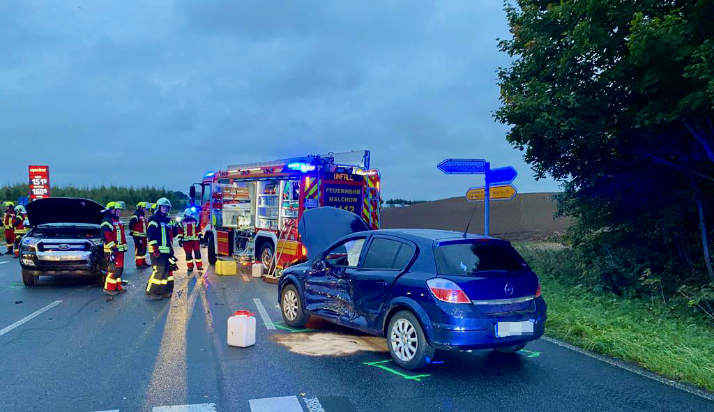 Bei einem Unfall gestern Abend auf der B 192 in Höhe der Malchower Sprint-Tankstelle sind zwei Frauen verletzt worden. Wie die Polizei auf Nachfrage mitteilte, wollte eine 50 Jahre alte Autofahrerin mit ihrem Wagen aus Malchow kommend nach links auf die B 192 biegen und übersah dabei offenbar einen Pickup, so dass es zum Zusammenstoß kam. Die Fahrerin des Autos ist mit Verletzungen in ein Krankenhaus gebracht worden, die Beifahrerin aus dem Pickup erlitt einen Schock. Dass bei diesem Unfall Personen eingeklemmt wurden, wie ursprünglich zur Alarmierung der Feuerwehr gemeldet, bestätigte sich zum Glück nicht. Den entstandenen Schaden beziffert die Polizei auf rund 6000 Euro.