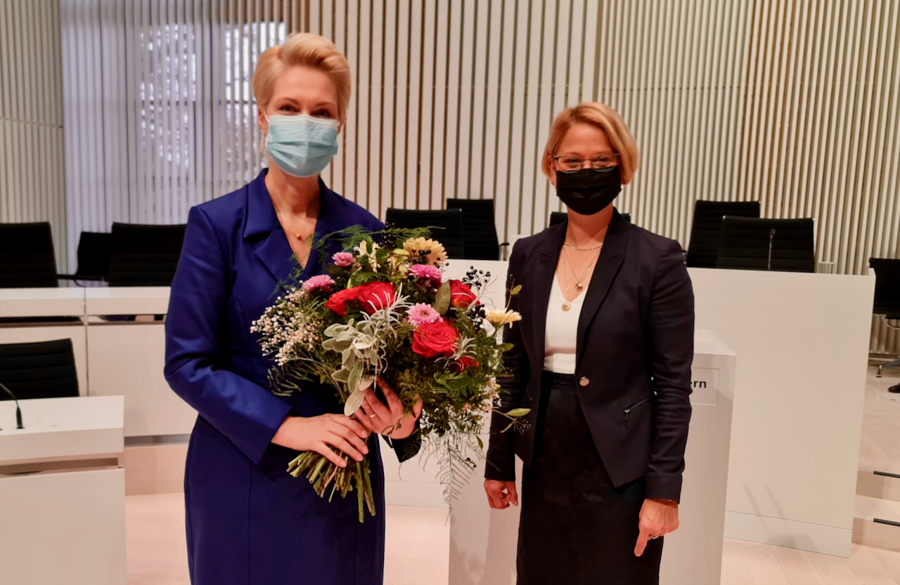 Der Landtag Mecklenburg-Vorpommern hat heute Manuela Schwesig (SPD) zur Ministerpräsidentin gewählt. Sie erhielt 41 von 79 Stimmen. „Ich freue mich sehr über das in mich gesetzte Vertrauen und bin davon überzeugt, dass die neue Landesregierung unter der Überschrift ‚Aufbruch 2030‘ gute Arbeit leisten wird. Die Stärkung der Wirtschaft für sichere Arbeitsplätze und gute Löhne, der soziale Zusammenhalt und der Klimaschutz sind unsere Schwerpunkte für die nächsten Jahre“, sagte die Ministerpräsidentin nach ihrer Wahl.