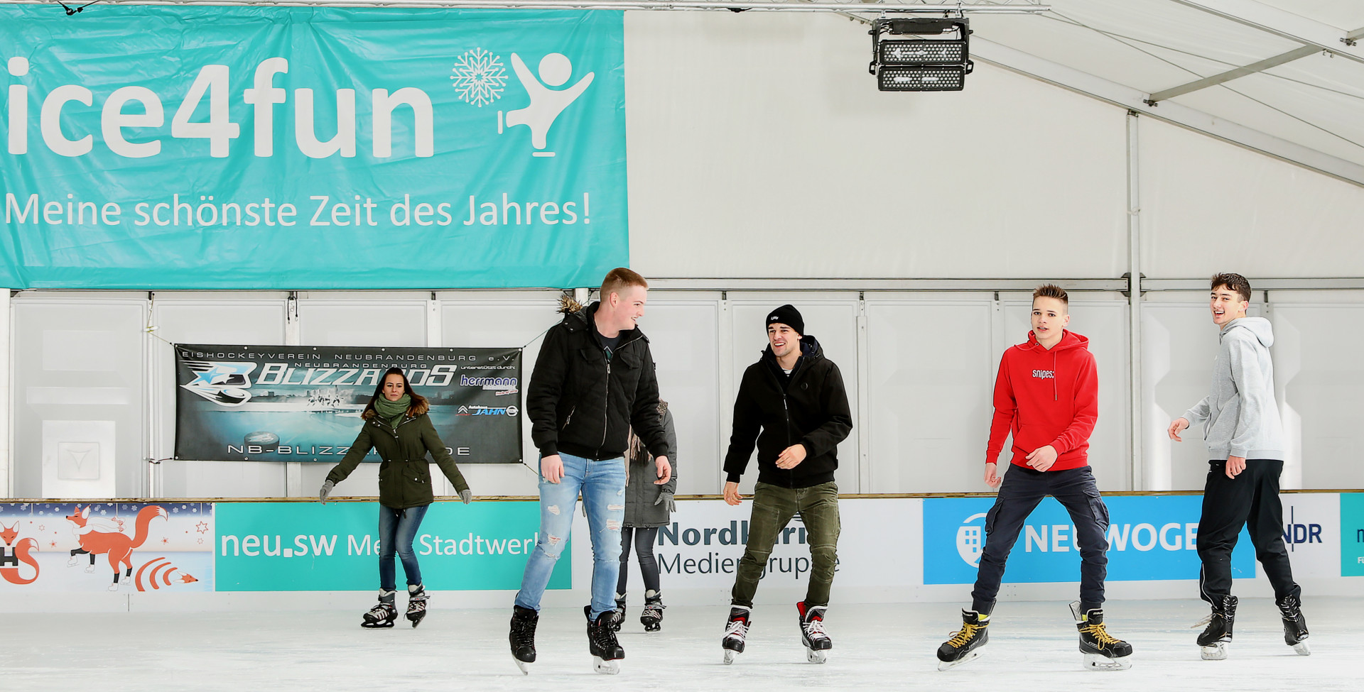 Nach einem Jahr Pause öffnen die Neubrandenburger Stadtwerke am kommenden Mittwoch, 24. November, endlich wieder die Türen der Eislaufhalle. Die 15. neu.sw Eislaufsaison „ice4fun“ dauert bis zum 2. Januar 2022. Bis dahin stehen 400 Paar Schlittschuhe bereit – genauso wie Lernhilfen für diejenigen, die Unterstützung benötigen. Kinder dürfen gern die neu.sw EisSchule besuchen, bei der die Mitglieder vom Eishockeyverein „Neubrandenburg Blizzards“ das Einmaleins des Schlittschuhlaufens lehren und manche Tricks verraten.