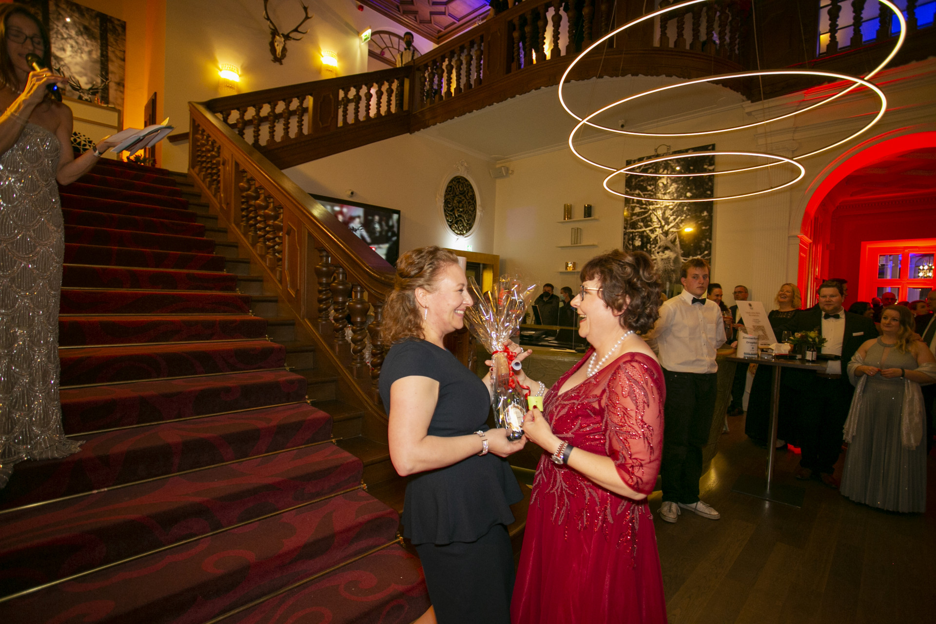 Gastgeber Harald Schmitt und ein goldener Engel begrüßten die 387 Gäste, begleitet vom Fanfarenzug Neustrelitz im imposant illuminierten Schloss Fleesensee. Es wurden Weine und Craftbeer verkostet oder Zigarren und Rum- Spezialitäten probiert. Ein Pantomime zauberte ein Lächeln in die Gesichter der Gäste, die sich auch in einer Fotobox zur Erinnerung verewigen lassen konnten.