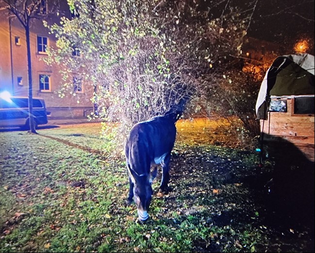 Ein Esel auf Erkundungstour: Gegen Mitternacht ist die Stralsunder Polizei über einen Esel informiert worden, der im Bereich der Frankenvorstadt auf Wanderschaft war. Die Beamten entdeckten das Tier, das sich auf einer Rasenfläche in aller Seelenruhe stärkte. Nach kurzer Zeit wurde auch der Halter des Tieres im näheren Umfeld ermittelt. Da sich der Esel nicht störrisch gab und „allen polizeilichen Anweisungen Folge leistete“, konnten die Einsatzkräfte das Tier wohlbehalten übergeben. Der dankbare Besitzer, ein Schausteller, der momentan in Stralsund Station macht, will künftig besser darauf achten, dass der Esel nicht wieder allein auf Tour geht.
