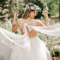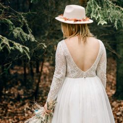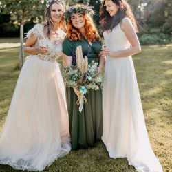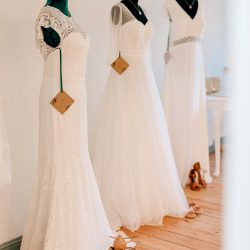 Doch was ist das Besondere an der Brautmode von Maria? Den Stil nennt sie „boho“. Das sind Kleider mit viel, aber dennoch unaufdringlicher Spitze, mit tiefen Rückenausschnitten, mit kurzen und langen Ärmeln – kein KlimBim, sondern eine lässige Eleganz im Hippie-Style. Dennoch: Die Bräute, die ihre Mode tragen, strahlen Eleganz aus, eine sehr natürliche. Jedes Kleid gibt es bei Maria nur einmal. Und: Auch Größen jenseits der 34 und 36 sind im Angebot, denn die Durchschnittsbraut, das weiß die 31-Jährige, hat nun mal keine Model-Maße 90-60-90, möchte am schönsten Tag des Lebens aber dennoch individuell und wunderschön aussehen. Wie Maria selbst, die nach der schon vollzogenen Standesamts-Trauung im kommenden Jahr eine große Hochzeit feiern möchte – natürlich im Tannengrün-Kleid.