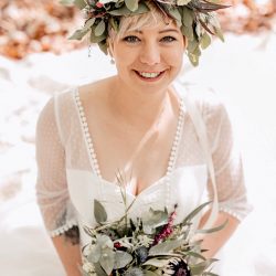 Um das Outfit perfekt zu machen, arbeitet die Müritzerin unter anderem mit einem Warener zusammen, der Holzringe herstellt, mit einem Schuhhersteller aus der Region, der ebenfalls nichts von 0850-Modellen hält, mit Floristen aus Malchin, die Bräuten außergewöhnliche Blumenkränze ins Haar oder auf die Hüte zaubern, und mit einer Fotografin aus Rostock, die dafür sorgt, dass die Hochzeiten für immer in Erinnerung  bleiben.