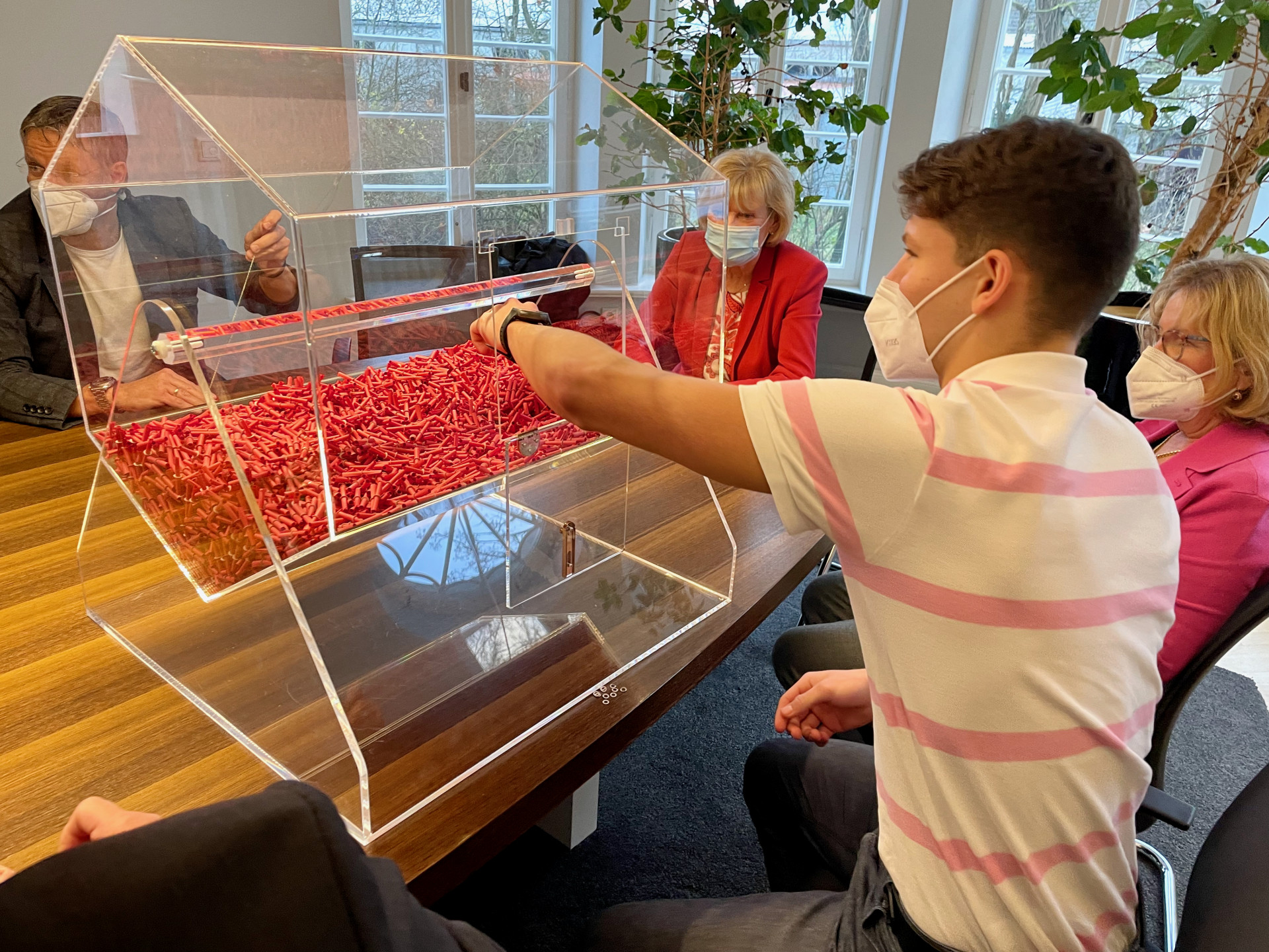 Elija fischte 162 Nummern heraus, in der Trommel befanden sich 8000 Lose – so viele Kalender wurden verkauft, also alle. Die Auslosung fand unter Aufsicht des Warener Notars Dr. Volker Gronert statt.