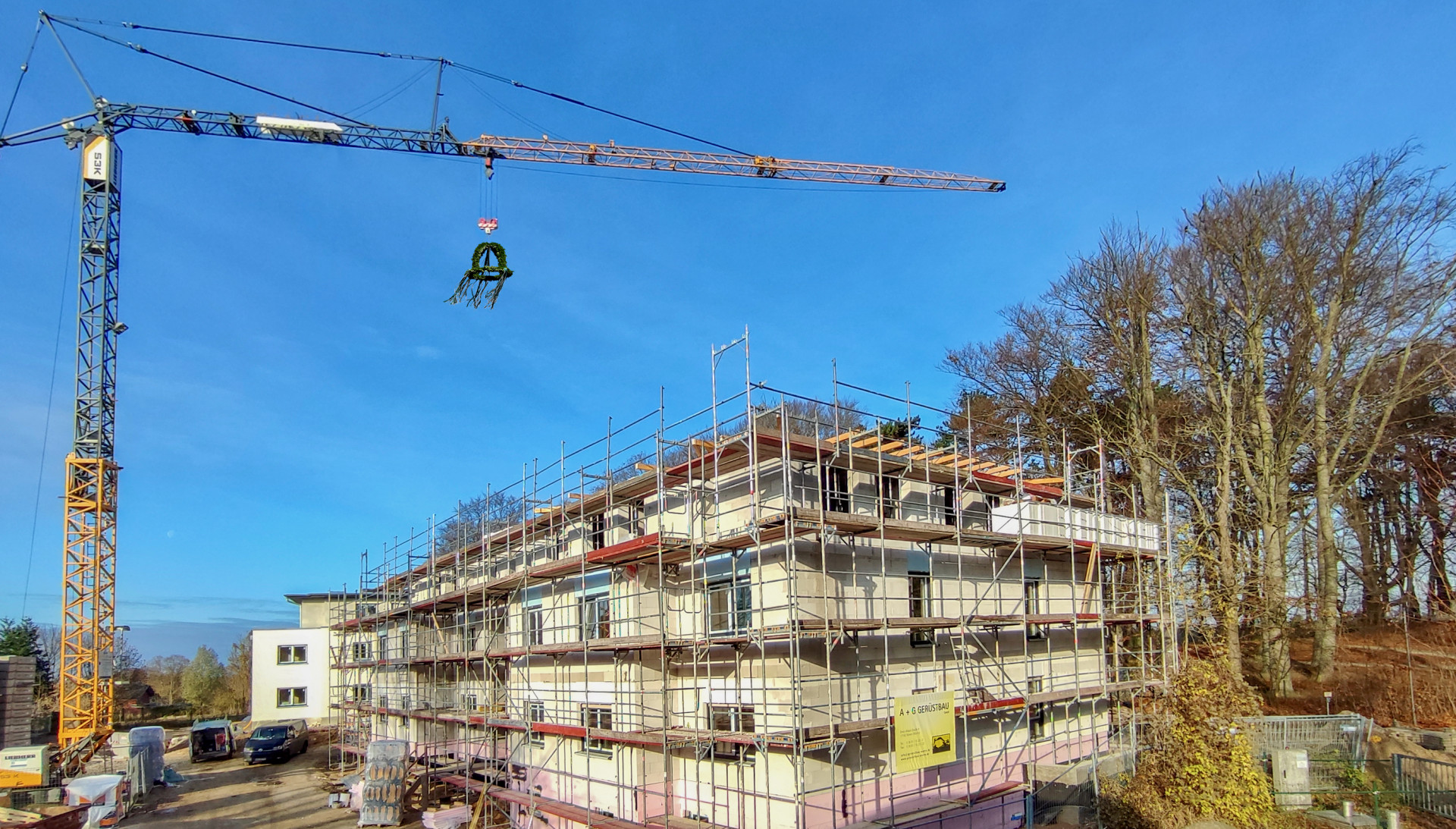 So hält, so verwöhnt man Mitarbeiter. Modern, komfortabel und löffelfertig ausgestattet: Das Hotels & Sportresort Fleesensee hat jetzt Richtfest für zwei neue Personalhäuser gefeiert. Im Beisein aller beteiligten Gewerke und Baufirmen fand die traditionelle Zeremonie mit anschließendem Richtschmaus im Zentrum des Resorts statt, die gemäß des Brauchtums die Bauwerke vor Unheil bewahren sollen. Unweit des Marktplatzes in Göhren-Lebbin entstehen zwei vollständig eingerichtete Häuser mit insgesamt 30 Wohnungen für Mitarbeiter des Hotels & Sportresort Fleesensee. Der Eigentümer, das Versorgungswerk der Zahnärztekammer Berlin (VZB), investiert rund 3,5 Millionen Euro in die Erweiterung der Personalwohnungen, die im Frühjahr 2022 fertig sein sollen. Darüber hinaus ist die Errichtung von weiteren 40 Personalwohnungen im Resort bis 2023 geplant.