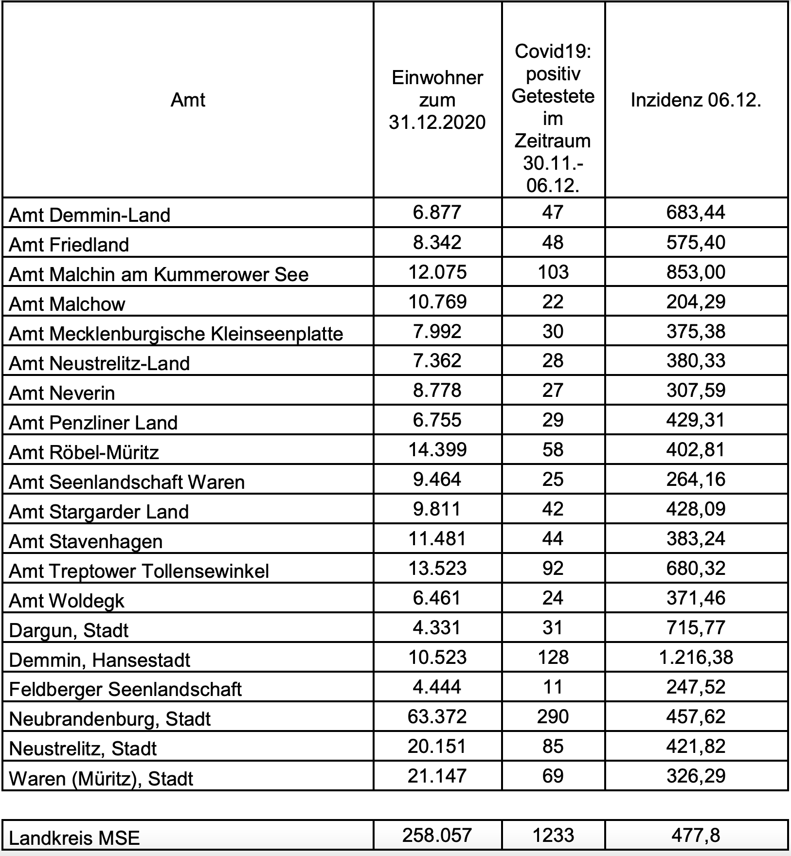 In diesem Artikel finden Sie heute auch wieder die Inzidenzen – aufgeschlüsselt nach Städten und Ämtern der Seenplatte.