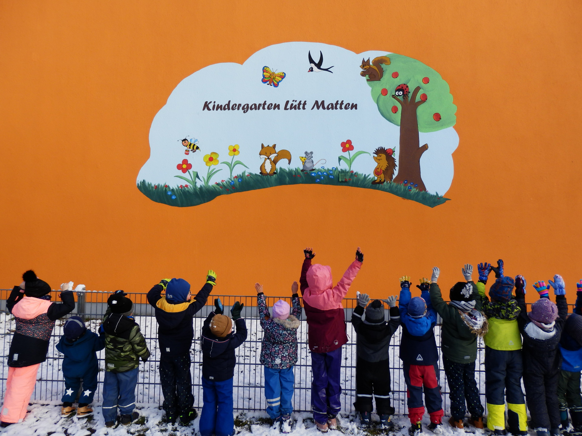 Zu sehen sind auf dem Bild alle Tiere, die den Gruppen im Kindergarten einen Namen geben. „Jeden Tag erfreuen sich die Kinder an diesem Wandbild und möchten auf diesem Weg einen herzlichen Dank an Herrn Kreye und sein Team schicken“, schreiben die Kita-Mitarbeiter an „Wir sind Müritzer“.