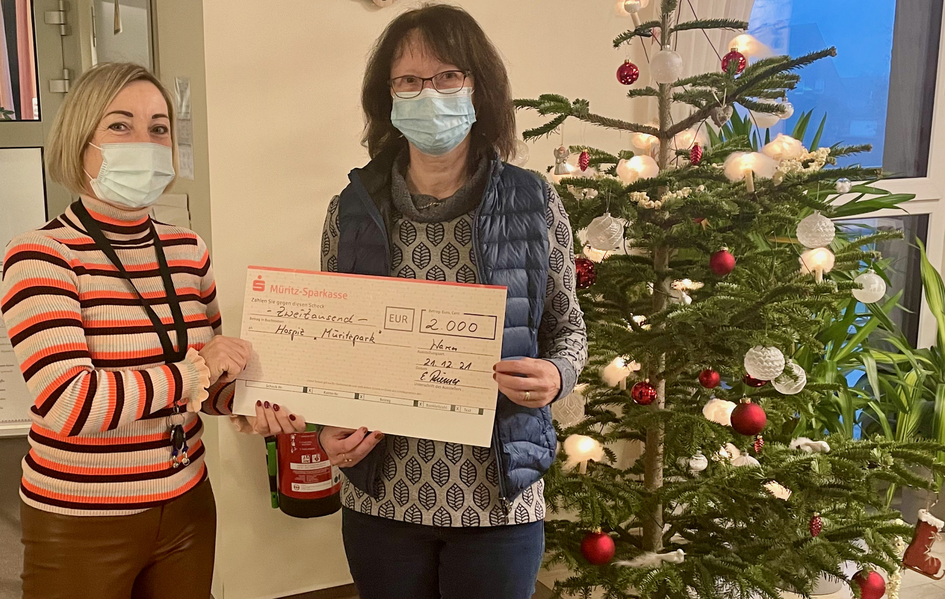 Adventsstimmung und richtige Weihnachts-Atmosphäre – auch dort, wo es manch einer vielleicht gar nicht vermutet: Im Warener DRK-Hospiz unternehmen die Mitarbeiter alles, um es ihren schwerkranken Bewohnern so richtig gemütlich zu machen. Ihnen soll es an nichts fehlen. Da gibt es einen bunt geschmückten Tannenbaum, Weihnachtsdekoration mit Stil und jeden Tag selbst zubereitete Leckereien. Gestern kam sogar der Weihnachtsmann oder besser, eine Weihnachtsfrau. Ellen Riemer von der Walower Stahl- & Maschinenbau GmbH (WSM) schaute vorbei. Und sie hatte viel Geld im Gepäck. 2000 Euro spendete das Unternehmen an das Hospiz – nicht zum ersten Mal, sondern bereits zum dritten Mal. Nachdem ein Mitarbeiter der Firma vor rund zwei Jahre seine letzten Tage wohl behütet und bestens betreut im Warener Hospiz verbracht hat, stand für die Chefs fest: Diese Einrichtung möchten wir unterstützen, und zwar regelmäßig. Sie haben Wort gehalten.