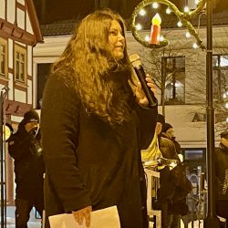 Neben den Organisatoren Manuela Lenuweit und Thomas Müller meldeten sich heute zwei junge Menschen aus dem Pflegebereich zu Wort – Toni, nach eigenen Angaben beschäftigt im Ansgar Wohnstift, und die 19-Jährige Jenny, die befürchtet, ihren Job im März des kommenden Jahres aufgeben zu müssen, weil sie nicht geimpft ist. Beide sprachen sich gegen eine Impfpflicht und den „Druck von oben“ aus, Jenny erzählte von einer Bekannten, die schwere Impfschäden erlitten habe.