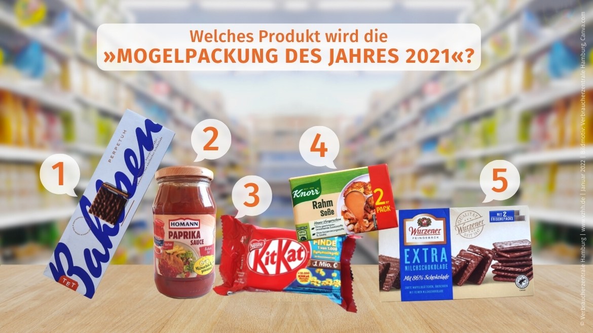 Die Abstimmung zur Wahl der „Mogelpackung des Jahres 2021“ läuft bis zum 24. Januar, 16 Uhr. Welches Produkt den Negativpreis erhält, wird am 25. Januar bekannt gegeben.