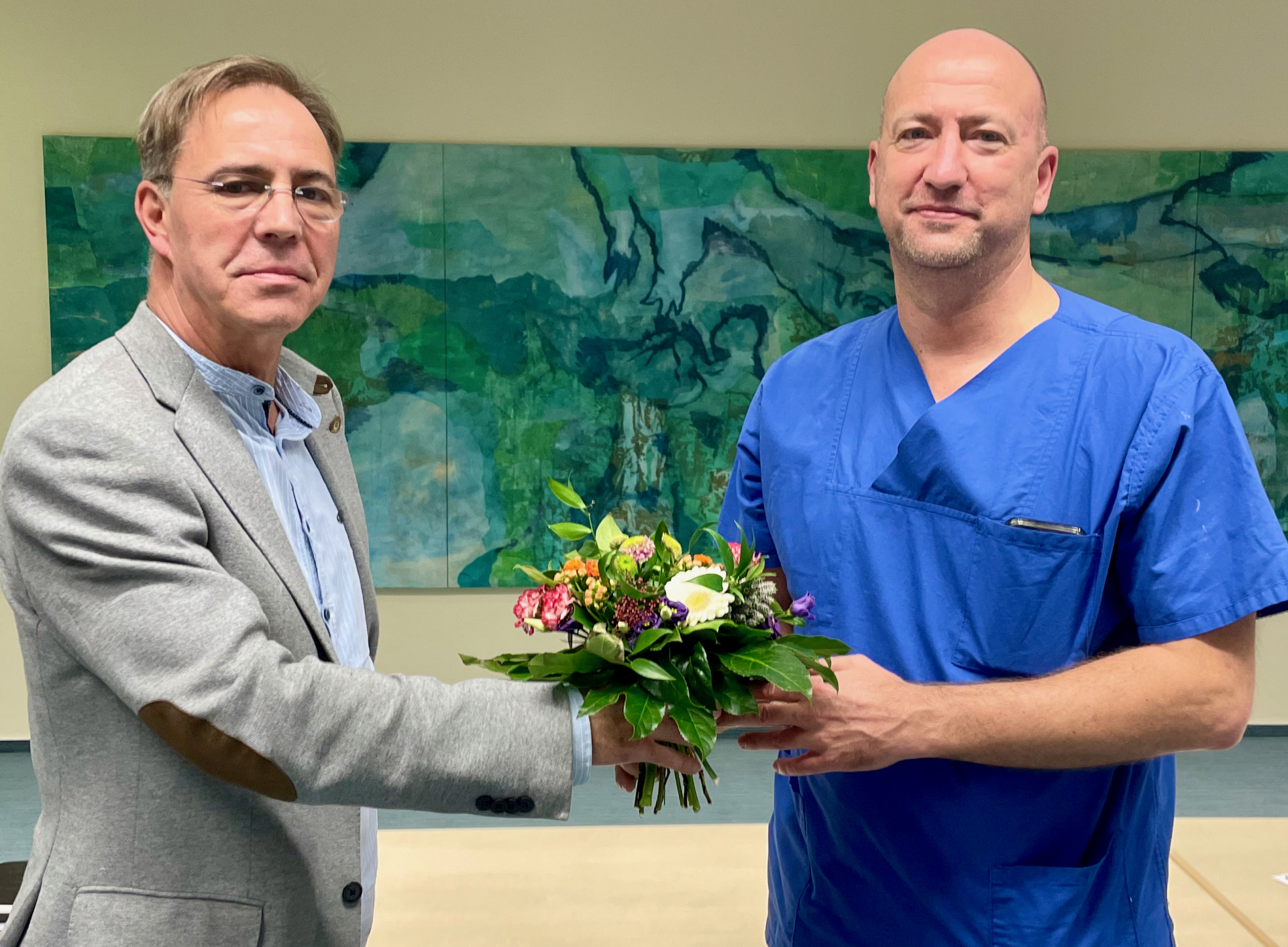 „Trotz des Fachkräftemangels sind wir hier in unserem Haus sehr gut aufgestellt. Das ist auch der Lehrtätigkeit und dem großen Netzwerk von Professor Kleemann zu verdanken, der immer darauf bedacht war, junge Kollegen für unser Haus zu begeistern“, so der Kaufmännische Direktor Sven Hendel. Und er plaudert sozusagen aus dem Nähkästchen, wenn er sagt: „Wir sind eine Gesundheitsfamilie, und in einer Familie wird auch mal gestritten, aber am Ende ist Blut immer dicker als Wasser. Genau das begeistert mich bei jeder Sitzung mit unseren Mitarbeitern.“