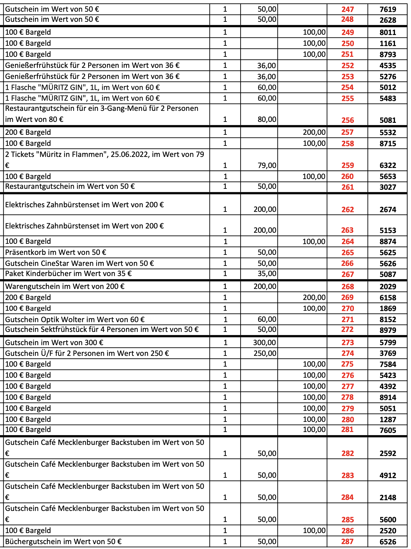 Die Weihnachtslotterie des Lions-Club Müritz und des Rotary-Club Waren ist Geschichte, aber die Gewinne sind noch nicht alle abgeholt. Auf vielfachen Leser-Wunsch veröffentlichen wir hier noch einmal alle Gewinnzahlen. Die beiden Clubs haben insgesamt 162 Gewinne im Gesamtwert von über 18 000 Euro verlost, der Erlös aus dem Verkauf der 8000 Kalender geht an verschiedene Kinder- und Jugendprojekte an der Müritz.