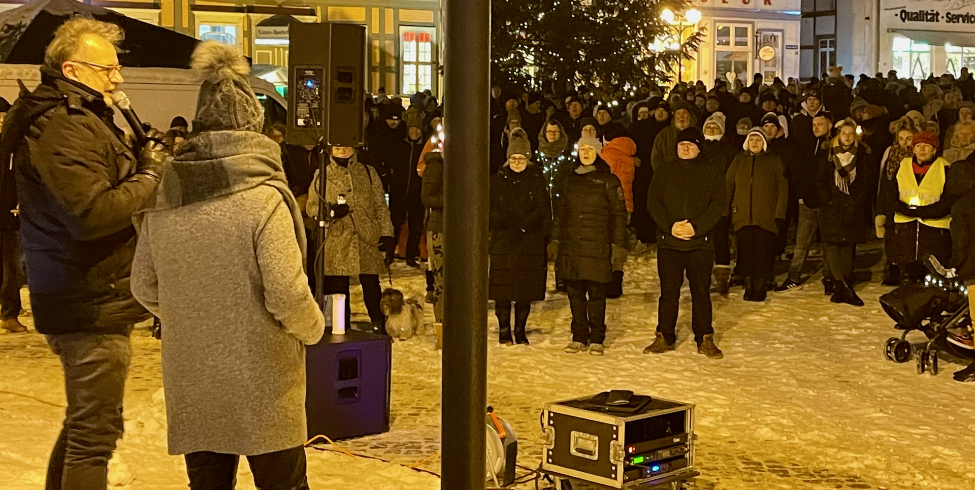 Die Initiative „Menschen stehen auf“, die seit Monaten Demonstrationen gegen die Corona-Maßnahmen in Waren organisiert und sich künftig „Menschlich – Stark–Miteinander“ nennen will, fordert den Rücktritt von Stadtpräsident Rüdiger Prehn. Anlass ist der von Prehn initiierte „Warener Appell“, den er in einer Mail an Medien unter anderem mit dem Satz „Die gemeinsame Sorge wegen …der zunehmenden Verbreitung extremistischen, Faschistischen und antisemitischen Gedankengutes unter dem mDeckmantel des Protestes gegen die Maßnahmen zur Bekämpfung der Pandemie, fassten wir in einem Appell zusammen“, ankündigte. Nach Meinung der Initiative bezichtige Prehn damit pauschal alle Menschen, die in dieser Zeit aus unterschiedlichen Motiven Versammlungen organisieren oder daran teilnehmen, Verbreiter extremistischen, faschistischen und antisemitischen Gedankengutes zu sein. Die Rücktrittsforderung verlas Thomas Müller von der Initiative gestern Abend auf der Demo, an der knapp 400 Menschen teilnahmen.