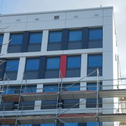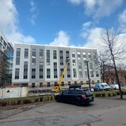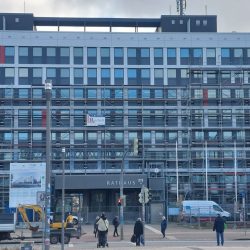 So langsam tut sich was: Am Rathaus Neubrandenburg fallen die ersten Hüllen. Nach mehrjähriger Sanierung schält sich das neue Aussehen frei. Das Gebäude am Friedrich-Engels-Ring mit seinen fast 900 Fenstern wird vorn von seiner neuen weiss-roten Metallfassade dominiert. An der Seite, wo auch ein Teil des Sozialamtes des Landkreises einziehen soll, dominiert dagegen modernes grau-weiss. Mit einem Hubgerät wird noch gearbeitet, es ist aber auch zum Einzug sinnvoll. Wann die Verwaltungen dort wieder arbeitsfähig sind, ist noch nicht bekanntgegeben worden. Man rechnet aber in den nächsten Monaten damit. Ursprünglich sollte die Sanierung Anfang 2022 abgeschlossen werden. Die Kosten für die energetische Sanierung der früheren SED-Bezirksleitung Neubrandenburg werden sich auf mehr als 20 Millionen Euro belaufen.