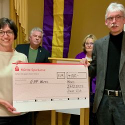 Die evangelisch-lutherische Kirchgemeinde St. Georgen Waren erhält Unterstützung für den Kinderchor und die Jugendkantorei, um Unterricht zur Stimmbildung und Proben-Wochenenden zu ermöglichen. Fördervereins-Vorsitzender Günter Rhein erhielt dafür einen Scheck über 1000 Euro.