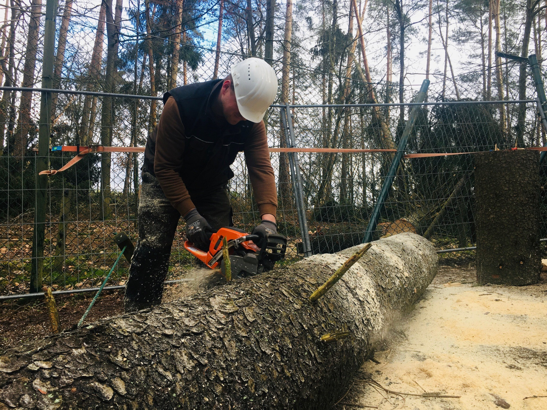 Schon bei Bekanntwerden des herannahenden Sturmtiefs konnten einige Bären vorsorglich in Vorgehegen mit weniger Baumbestand abgesperrt werden. Bärin Ida, die bislang in diesem Winter noch gar nicht in Winterruhe gegangen war, nutzte die kurzzeitige Umsiedlung, um sich in einer Betonröhre doch noch zur Ruhe zu betten. Eine wunderbare Überraschung für das Bärenwald-Team, denn Bären, die in die Winterruhe gehen, leben artgemäß ihre natürlichen Instinkte und Verhaltensweisen aus.