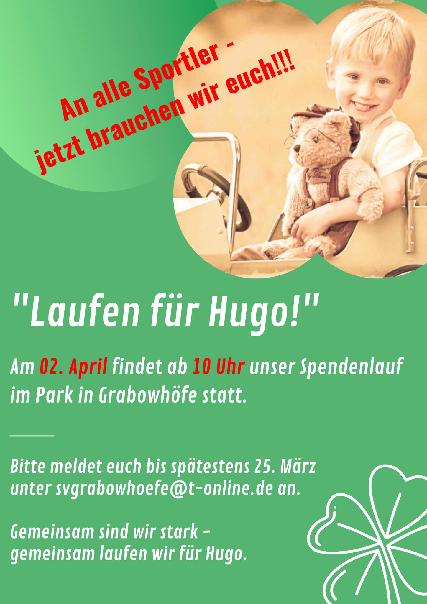 Der SV Grabowhöfe hat gemeinsam mit Bürgermeister Enrico Malow einen Spendenlauf für den Dreijährigen zu organisieren. Und der startet am 2. April. Anmeldungen sind bereits möglich, und zwar unter svgrabowhoefe@t-online.de.
