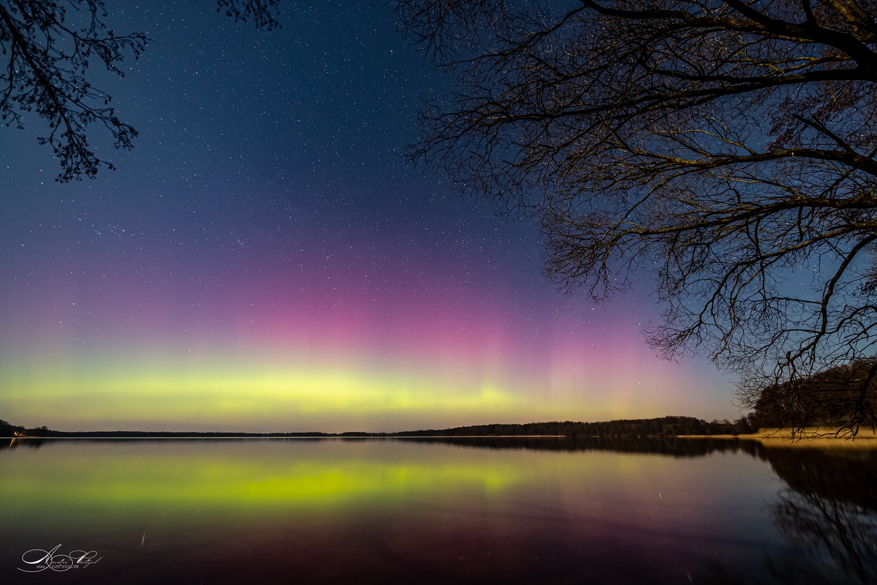 Er hat es wieder geschafft: Der Warener Fotograf André Pretzel verbrachte die letzte Nacht im Freien – in der Hoffnung auf die angekündigten Polarlichter. Und tatsächlich: Gegen 0.35 Uhr heute morgen gelang ihm am Torgelower See dieses phantastische Bild.