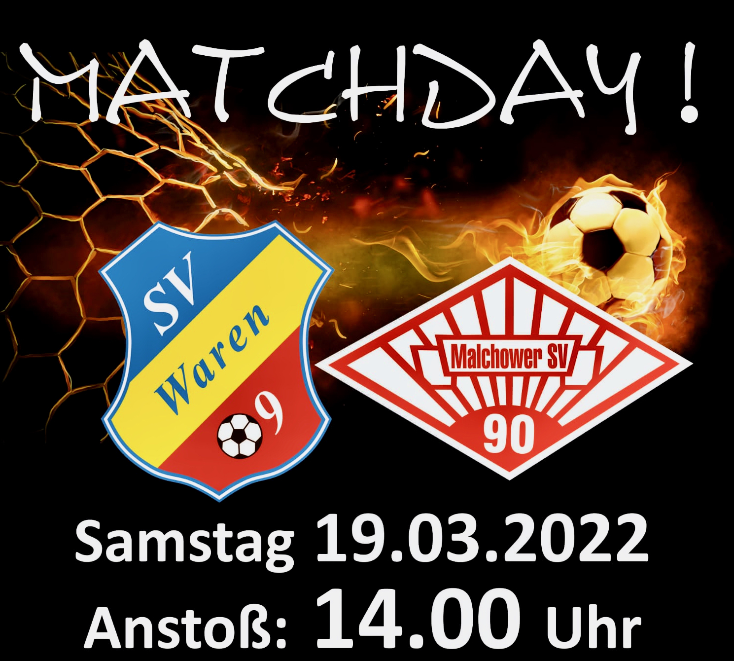 „Matchday“ heißt es heute ab 14 Uhr im Warener Müritzstadion: Der SV Waren 09 empfängt den Malchower SV zum Verbandsligaspiel. Die Malchower gehen zwar als Favorit in die Partie, aber nach den letzten beiden Unentschieden der Warener tun die Malchower gut daran, die Warener nicht zu unterschätzen. Waren hat nichts zu verlieren, denn der SV 09 „klebt“ weiterhin am Tabellenende. Zuschauer sind herzlich willkommen.