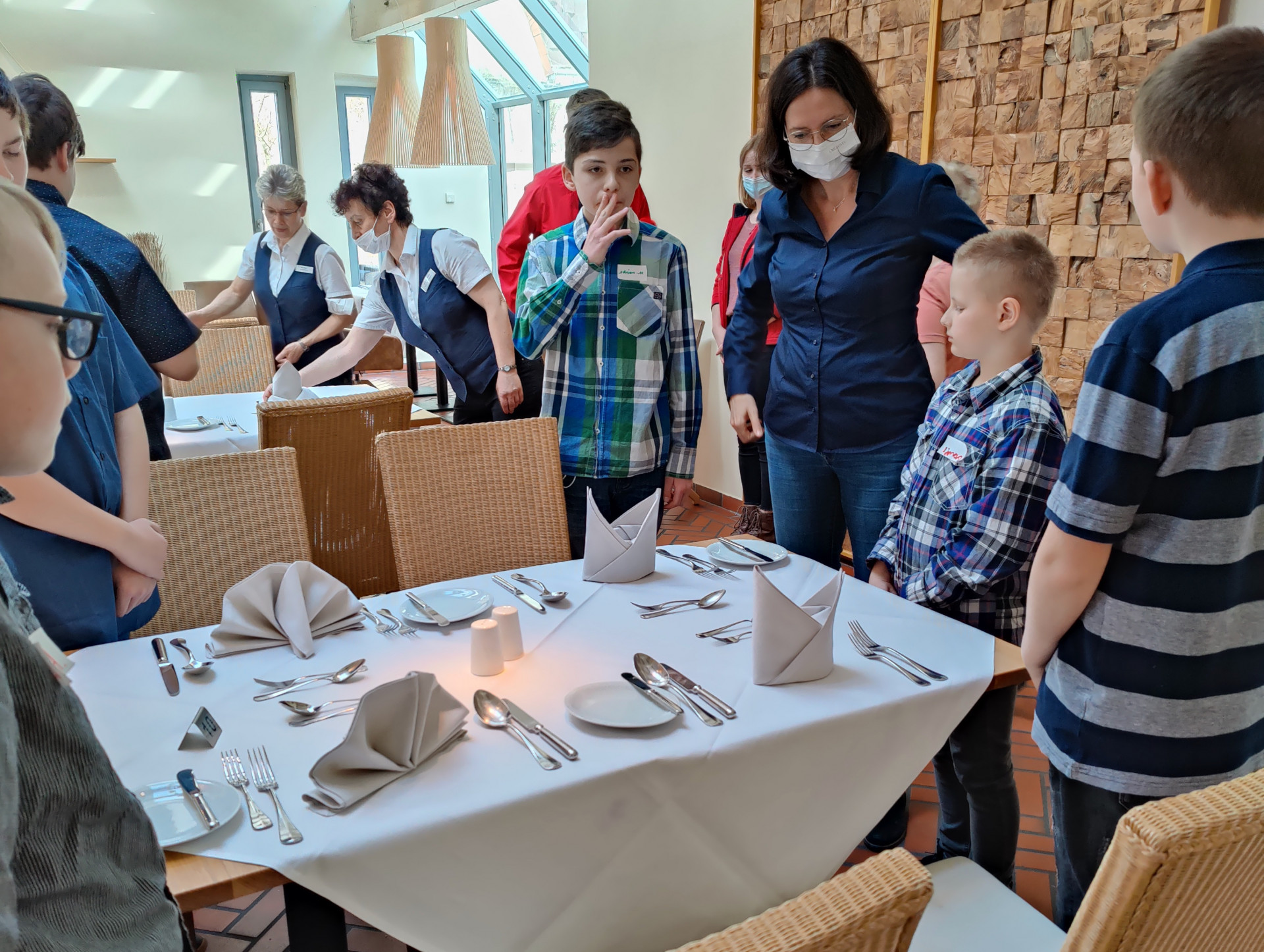 Wie läuft so ein Tag ab? Die Kinder kommen gegen 8.30 Uhr zum Gastronomen, lernen dann zum Beispiel viel über Tischmanieren, Restaurantbesuche, wie grüße ich, wie verabschiede ich mich, respektvoller Umgang miteinander und gegenüber Älteren und wo und wann darf ich das Handy nutzen. Anschließend können die Kinder gemeinsam einen Tisch eindecken, dekorieren, vielleicht Cocktails mixen, Menükarten gestalten oder auch mal in der Küche einen Salat zubereiten… die Gastronomen lassen sich immer einiges einfallen.