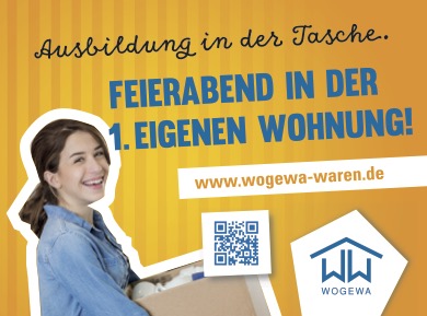 Bald ist es wieder soweit – die Ausbildungen starten: Gerade bei der ersten Wohnung realisieren viele junge Mieter, wie viel Verantwortung eine eigene Wohnung mit sich bringt. Die Wohnungsbaugesellschaft Waren mbH (WOGEWA) bietet Euch daher das Wohnen auf Probe an. Der Mietvertrag läuft sieben Monate, und Ihr könnt das selbstständige Wohnen so kennen lernen. Wenn es Euch nach den sieben Monaten noch immer gefällt, besteht die Möglichkeit, den Mietvertrag zu verlängern. Zum Abschließen eines Mietvertrages innerhalb der Ausbildung ist es der WOGEWA wichtig, dass ein Familienmitglied ebenfalls in den Mietvertrag aufgenommen wird. Zu einem späteren Zeitpunkt nach der Ausbildung, kann dieser aus den Mietvertrag entlassen werden, wenn Ihr finanziell auf eigenen Beinen steht.