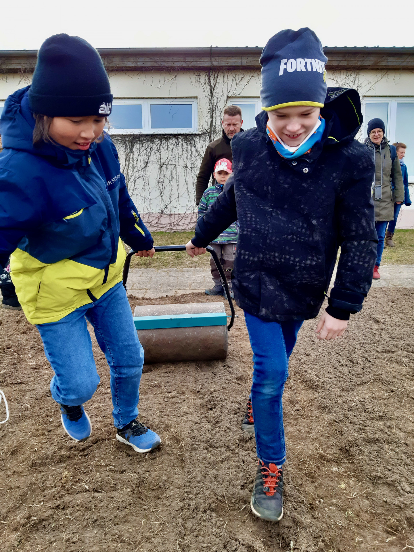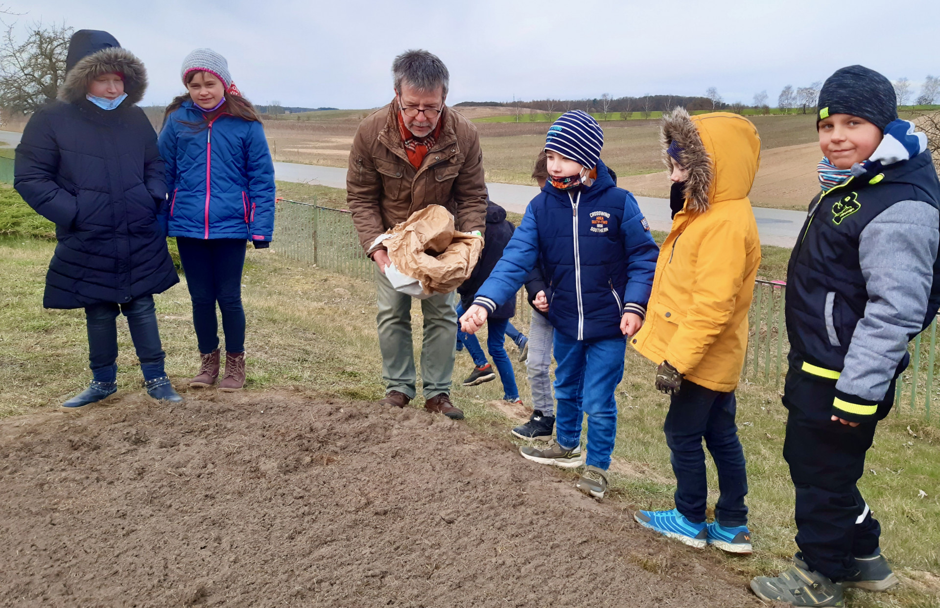 „Das Interesse daran, mit den Händen zu arbeiten, an der frischen Luft zu lernen und Themen wortwörtlich zu begreifen, ist groß. Unsere Landwirte unterstützen die Klassen vor Ort mit ihrem Know-How und ihrer Technik“, so Heike Müller. So stehen dem Mädchen und Jungen der Grundschule „Uns lütt Schaul“ in Kargow beispielsweise der Landwirtschaftsbetrieb Kagel und der Biohof Puls tatkräftig zur Seite. Bei der Aussaat „mit vollen Händen“ unterstützt Gabriele Lubahn vom Landwirtschaftsbetrieb die Kinder. „Zum Beispiel dürfen die Samen nicht zu tief in der Erde liegen, weil sie es sonst nicht schaffen, ans Licht zu kommen“, erklärt sie.
