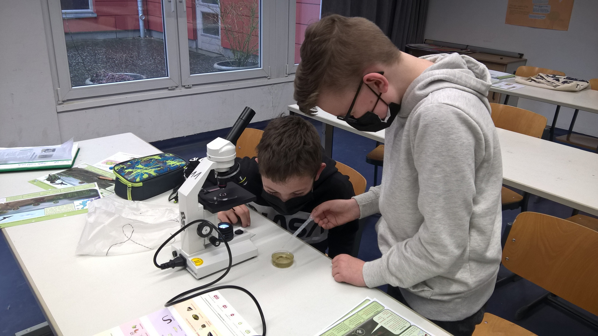 Bei der Frage „Wer schon einmal Wasser beim Schwimmen im Fleesensee geschluckt hat“ meldeten sich alle Jung-Angler, die beim Projekt „ANGELNmachtSCHULE“ in Malchow dabei sind. Bei der Frage, ob sie nur reines Wasser geschluckt haben, meldeten sich nur noch die Hälfte der Teilnehmer der Angel-AG, die andere Hälfte zögerte an dieser Stelle ein wenig. Die Verwirrung und Unsicherheit war komplett. Die Antwort auf die Frage ist in dieser Woche in der Angel-AG geklärt worden. Neben der Vermittlung vom Aufbau und Funktionen von Nahrungsketten, Räuber-Beute-Beziehungen und Nahrungskreisläufen mit Produzenten, Konsumenten und Destruenten kamen in dieser Stunde zur Thematik „Gewässerkunde“ auch die Schulmikroskope zum Einsatz, mit deren Hilfe die Jung-Angler Wasserproben genau unter die Lupe nahmen.