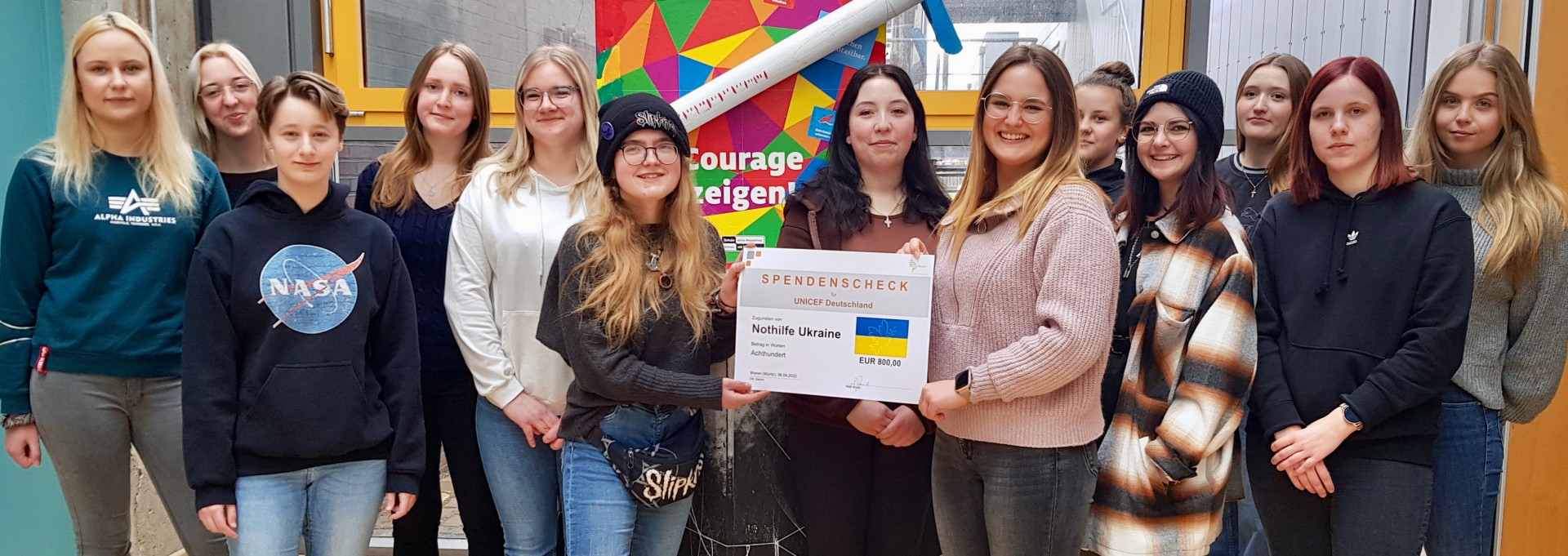 Die Spendensumme von 800 Euro soll für den schnellen Wiederaufbau und die Inbetriebnahme der Ausbildungsstätten in der Ukraine verwendet werden und wird an UNICEF weitergeleitet. UNICEF will mit dem Geld die Menschen beispielsweise mit sauberem Trinkwasser und Medikamenten versorgen und bei der Fortbildung von Lehrern und Betreuern helfen, damit die Kinder lernen, die Gewalt um sich herum zu verarbeiten. Weiterhin sollen die Kinder Hilfe erhalten, die unter Gewalt, Armut und einer unsicheren Zukunft leiden. Dazu zählen diejenigen, die auf den Straßen oder in Heimen leben oder von Aids betroffen sind.