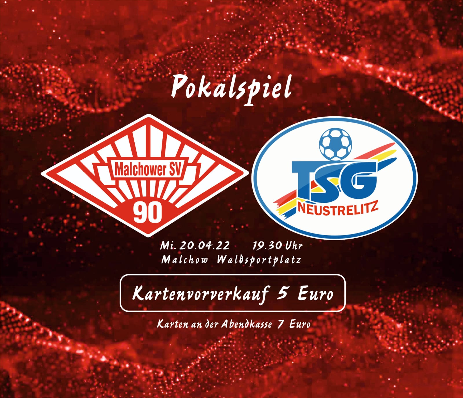 Auf dieses Pokalspiel freuen sich viele Fußball-Fans schon heute: Am kommenden Mittwoch, 20. April, spielt der Malchower SV zu Hause gegen die TSG Neustrelitz, und zwar im Halbfinale des Landespokals. Karten für das Spiel gibt es ab sofort in der Geschäftsstelle des MSV, und zwar morgen ab 11 Uhr, Sonnabend von 9 bis 11 Uhr, Montag von 14 bis 17 Uhr und Dienstag von 10 bis 18 Uhr. Außerdem sind die Tickets bei Sport Schimmel in Waren zu haben. Im Vorverkauf kostet die Karte fünf Euro, an der Abendkasse sieben Euro.