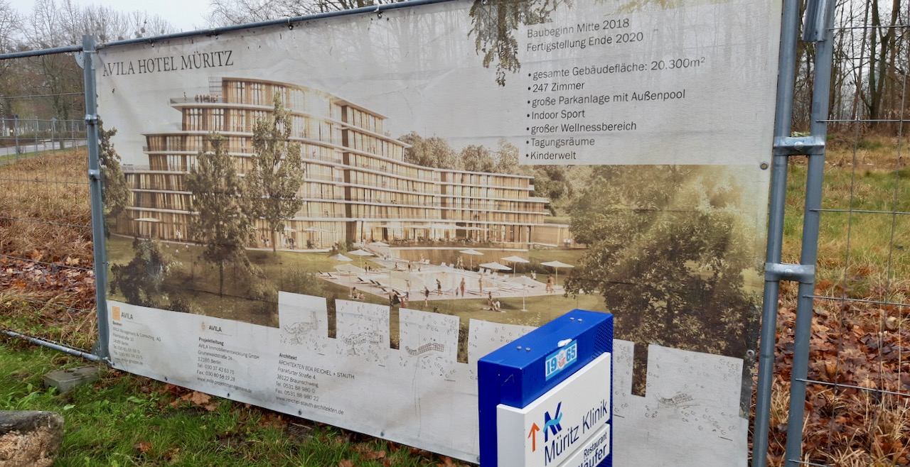 Rund vier Jahre nach der Sprengung des einstigen Müritz-Hotels haben in Klink jetzt die Bauarbeiten für ein neues Hotel begonnen. Das berichtet der NDR unter Berufung auf den Investor. Demnach sind Arbeiter jetzt zunächst dabei, das Grundwasser abzusenken. Das neue Hotel soll etwa 60 Millionen Euro kosten, über 248 Zimmer auf fünf Etagen verfügen und einen großen Wellnessbereich inklusive Schwimmbad bekommen. Mit der Fertigstellung rechnet die Avila-Gruppe als Investor im Jahr 2024. Betreiber des Vier-Sterne-Hotels soll die Dorint-Kette werden.