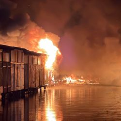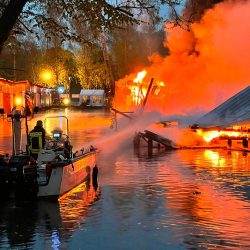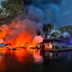 Feuerinferno am Oberbach in Neubrandenburg: Nur rund drei Wochen nach einem dortigen Bootsschuppenbrand stehen seit den frühen Morgenstunden erneut mehrere Bootsschuppen in Flammen. Die Feuerwehr ist im Großeinsatz, nach ersten Schätzungen sind rund 20 Bootsschuppen betroffen.