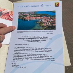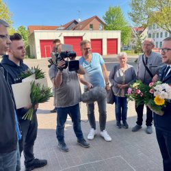 Von dem heutigen Aufeinandertreffen mit den Brandopfern wussten sie nichts. Eine TV-Produktionsfirma hat das gemeinsam mit „Wir sind Müritzer“ organisiert. Spontan entschieden sich auch Warens Bürgermeister Norbert Möller, Feuerwehrchef Reimond Kamrath und Warens Polizeichef Stefan Philipp, den Lebensrettern ebenfalls Danke zu sagen.