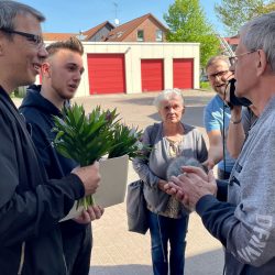 Ohne Domenik und Daniel hätten die 78 Jahre alte Brigitte Drewes und der 81-jährige Horst Warsow heute wohl nicht auf dem Warener Feuerwehrhof stehen können. Vor rund einer Woche ging in der Wohnung des älteren Paares der Akku eines Rollstuhls ins Flammen auf, das Feuer versperrte ihnen den Weg ins Freie. So brachten sich die Warener zunächst auf ihrem Balkon in Sicherheit vor dem Rauch und riefen um Hilfe. Domenik Loch und Daniel Übner – 18 und 39 Jahre alt – hörten die Schreie, überlegten nicht lange und eilten sofort in die Wohnung, um die Senioren zu retten. Heute Vormittag sahen sich Retter und Brandopfer das erste Mal wieder. Ein sehr emotionaler Moment. „Ohne Euch Beide wären wir jetzt tot“, sagte Horst Warsow und nimmt seine Retter dankbar in den Arm.