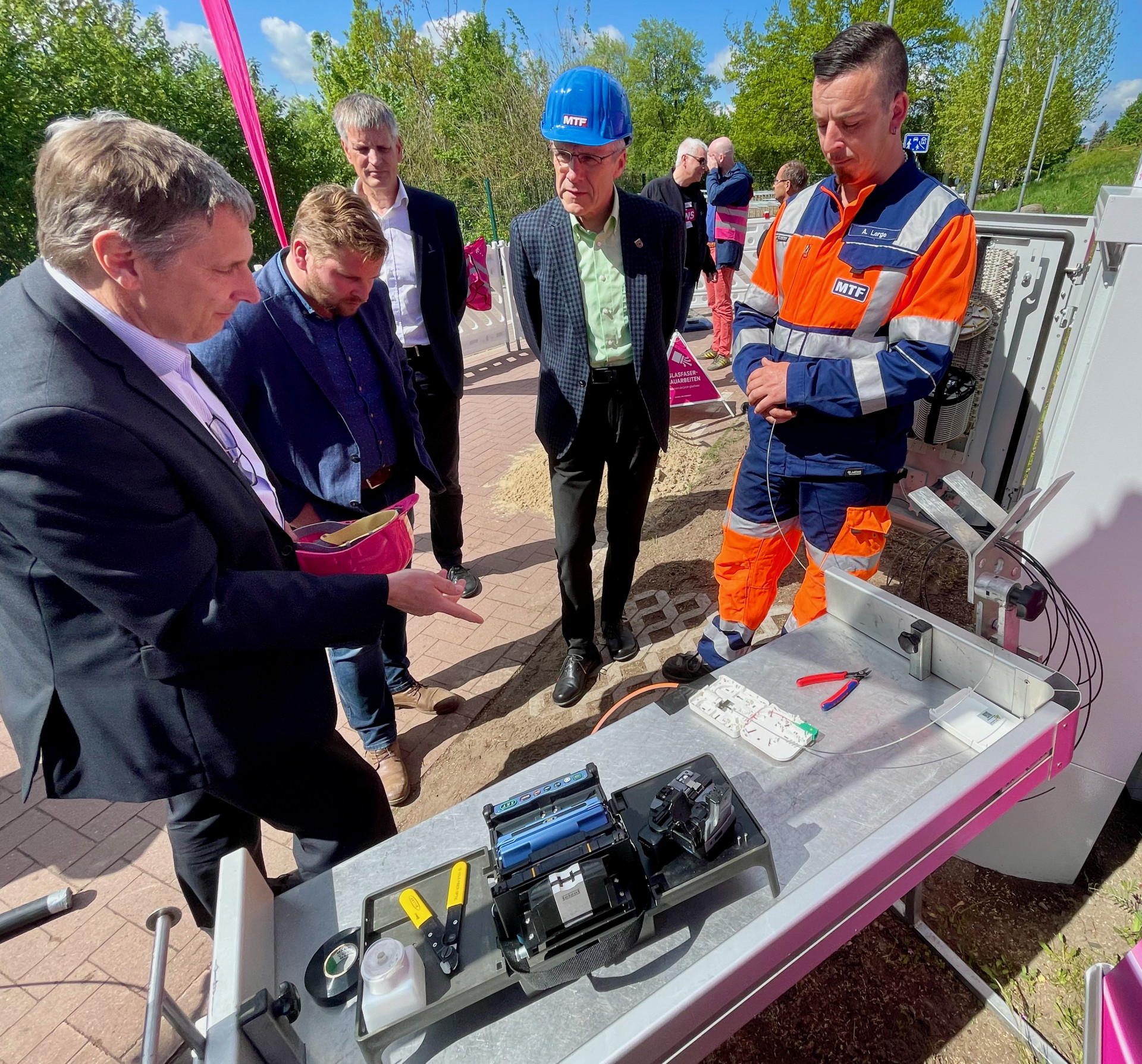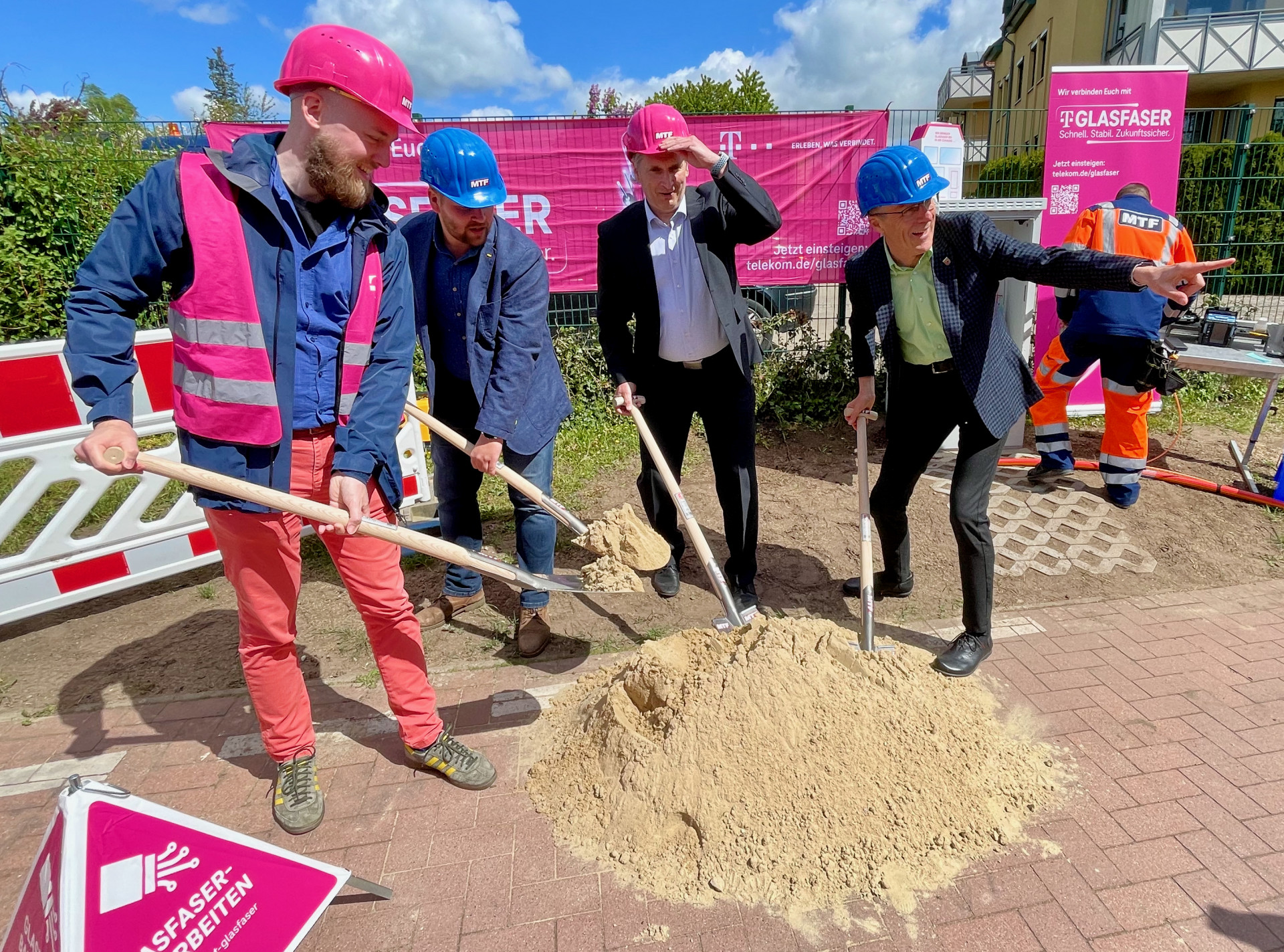 Von dem gestern gestarteten Glasfaser-Ausbau profitieren in den kommenden Wochen und Monaten exakt 2536 Haushalte – die meisten von ihnen in Neubaublöcken der Weststadt. Die Telekom baut auf eigene Rechnung, also ohne Förderung, und verlegt mehr als 60 Kilometer Glasfaser zu acht Verteilern. Auch bis direkt in die Häuser und Wohnungen hinein. Wer sich während der Ausbauphase für den Gasfaser-Anschluss entscheidet, muss dafür nichts zahlen, die Monteure ziehen die Kabel auf Wunsch bis in die Eigenheime oder bis in jede einzelne Wohnung. „Dafür brauchen wir die Genehmigung der jeweiligen Eigentümer. Schließlich betreten wir Privatgrund. Den Anstoß können auch Mieter geben, wenn sie sich bei uns melden“, so Torsten Freiberg als Regionalmanager der Telekom. Wer sich nicht jetzt entscheidet, kann sich auch später anschließen lassen, muss dann aber selbst bezahlen.